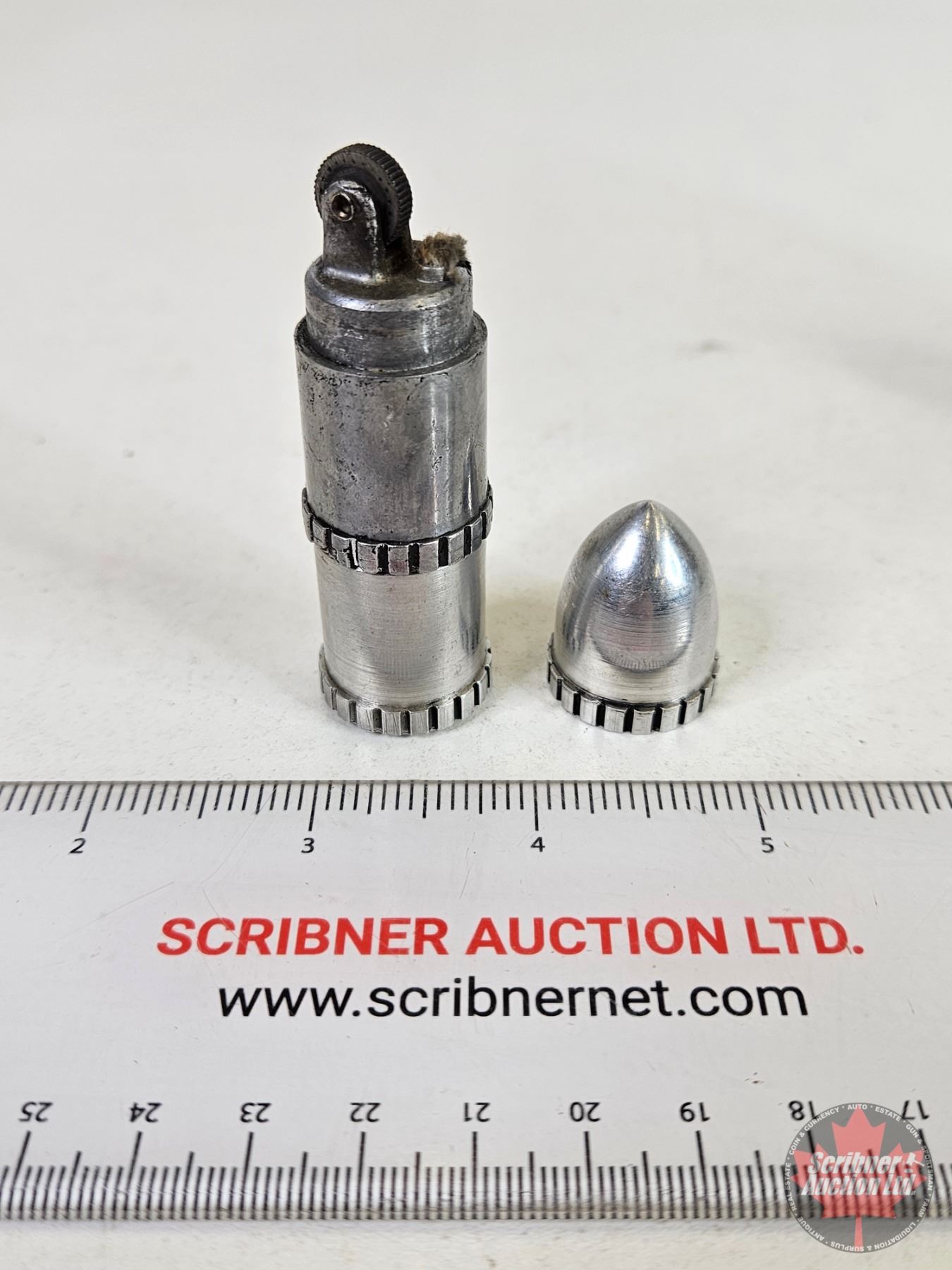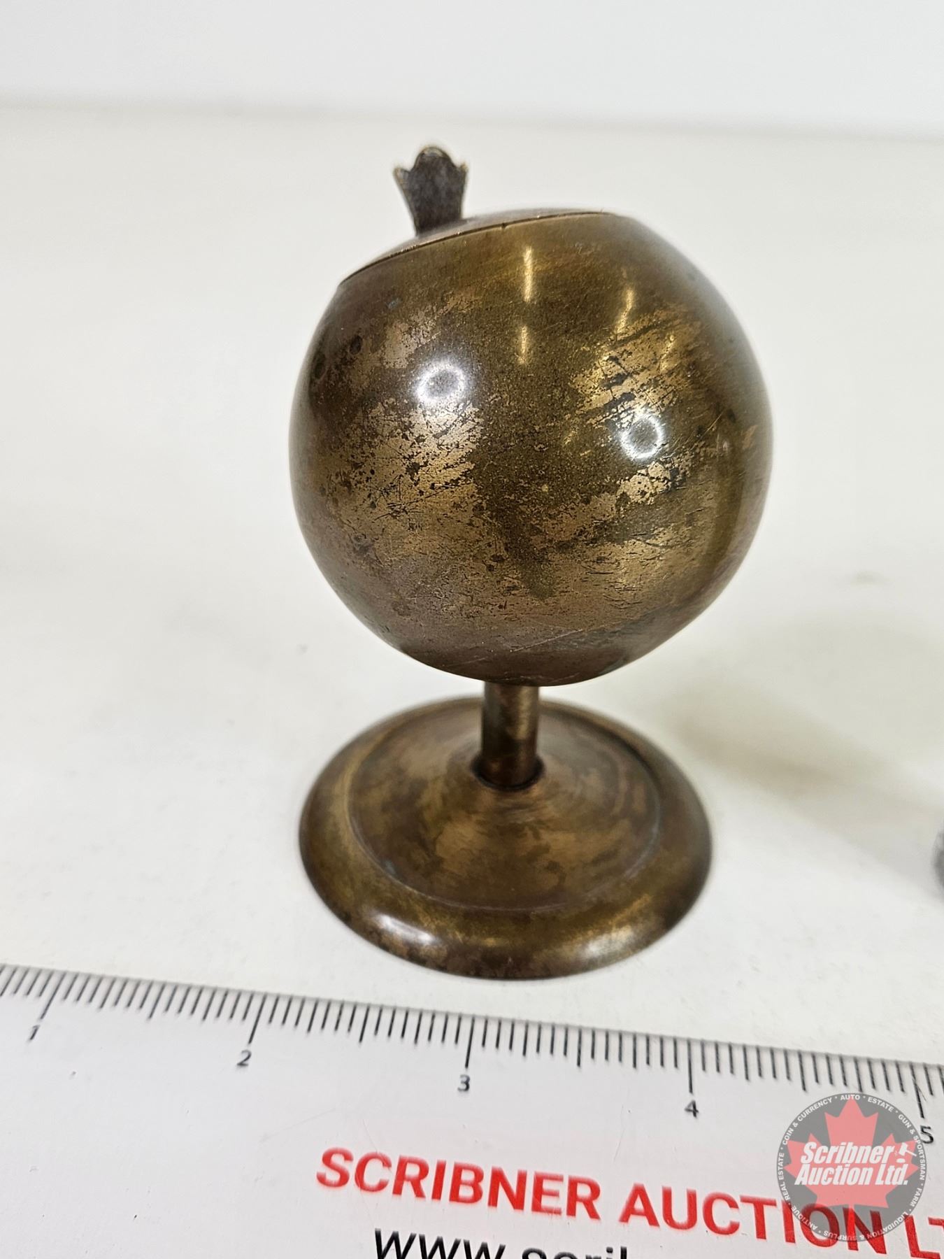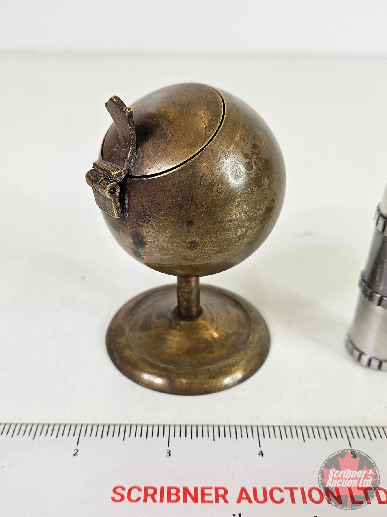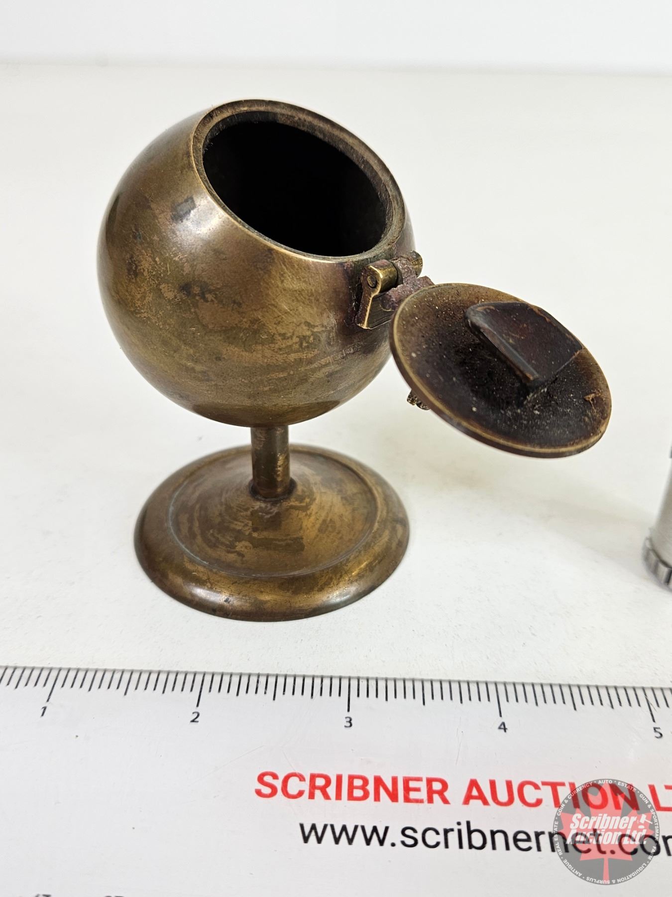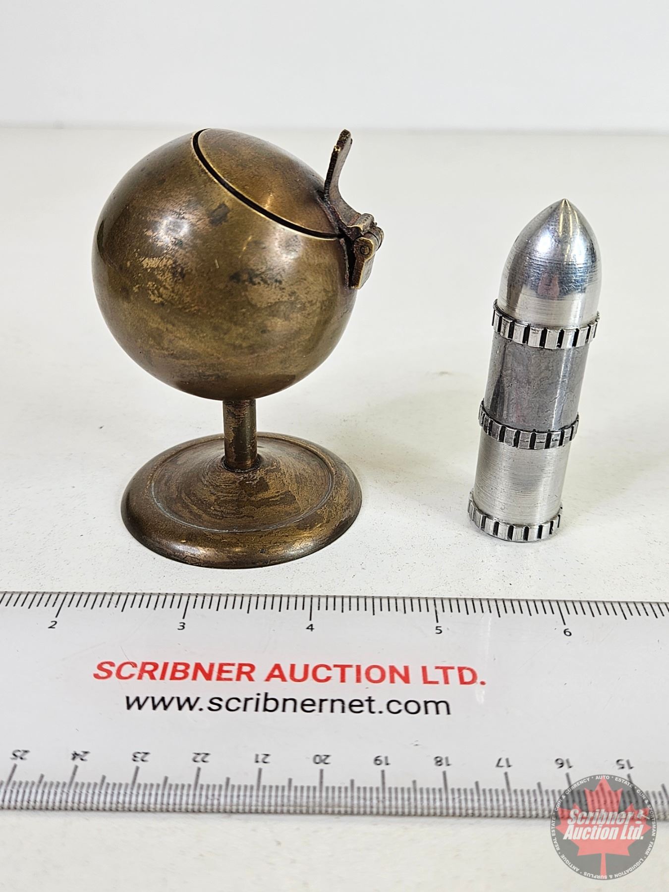 Bullet Lighter & Mid Century Brass Globe Ashtray (3-1/2"H)