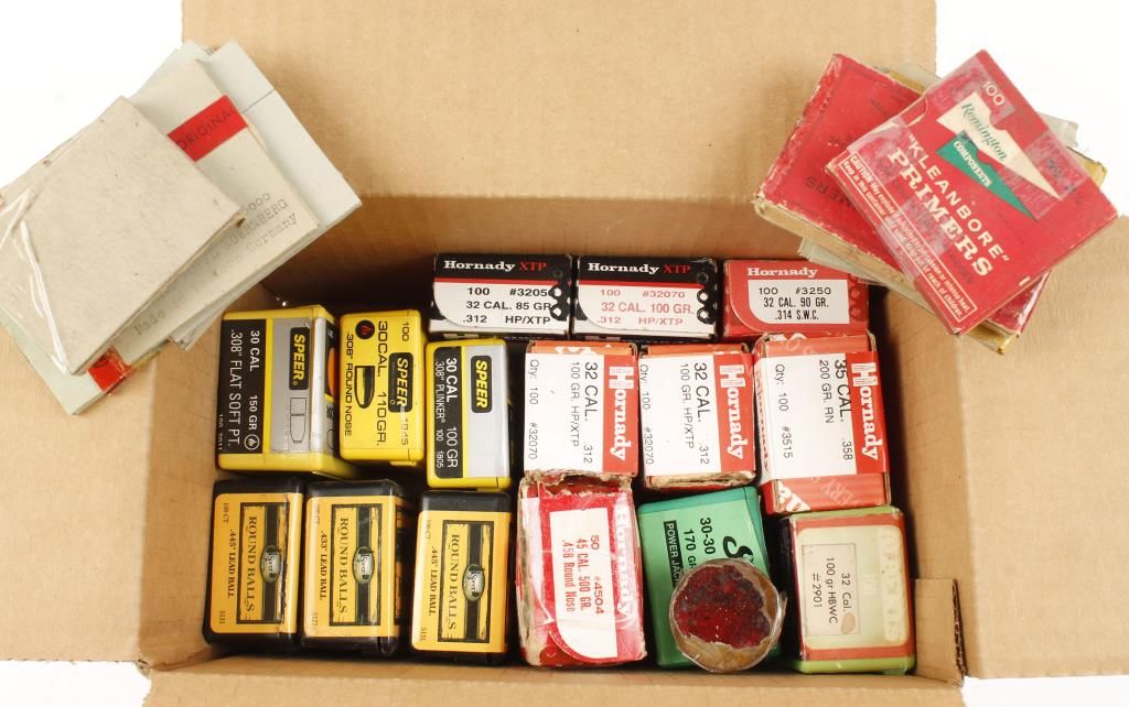 Includes bullets for Hornady .32, .45, & .35; Speer .30 & round lead balls, Sierra .30-30, Swageo .32, plus RWS misc primers