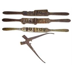 Bullet molds (4): 3 double cavity & 1 round single cavity, not marked, all 5"L.