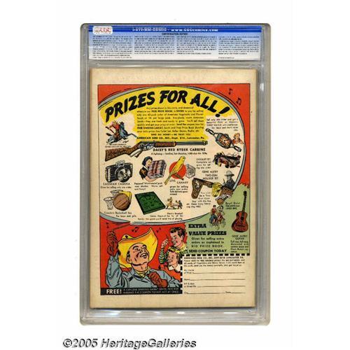 <B>Bulletman #4 Crowley Copy pedigree - File Copy (Fawcett, 1942) CGC VF/NM 9.0 Cream to off-white pages.</B></I> In many an instance, the best copy known to exist of a particular Fawcett book is the one from the collection of Fawcett editor Wendell Crowley. And this is one of those instances! In addition to the adventure of Bulletman and Bulletgirl, there's a backup feature with Bill Ward art. Overstreet 2005 VF/NM 9.0 value = $925; NM- 9.2 value = $1,250. CGC census 8/05: 1 in 9.0, none higher. <BR><BR><B>Important notice:</B> Heritage usually auctions material at the rate of 200-250 lots per hour. On some occasions eBay Live bid software or the Internet may not be able to keep up with the pace of the auction. We recommend placing a realistic absentee bid now as insurance to avoid disappointment. Occasionally the auctioneer may eliminate or reject an eBay Live bid, and the auctioneer may also reopen a lot after the close of the eBay live bidding (usually because we missed an audience bid), and may reject your bid even if it shows you as the winning bidder. By bidding via eBay Live, you agree that Heritage may award the lot to another bidder at its sole discretion under the circumstances described above or any other reasonable circumstances. Since eBay bids are not shown to us until we open the lot on the floor, we treat those bids just like floor bids. In most cases the floor responds before the eBay bid is presented to us, due to Internet lag time, so for consistency we have made it a policy that floor bids are always considered first over tie eBay live bids. Also please note that all Heritage lots purchased through eBay Live carry a 20% Buyer's Premium. Please make sure you read the Terms and Conditions before you bid. This lot is being auctioned in conjunction with a live floor auction by Heritage Galleries & Auctioneers. All final auction and invoice information will be supplied by Heritage Galleries & Auctioneers, and all other information should be considere