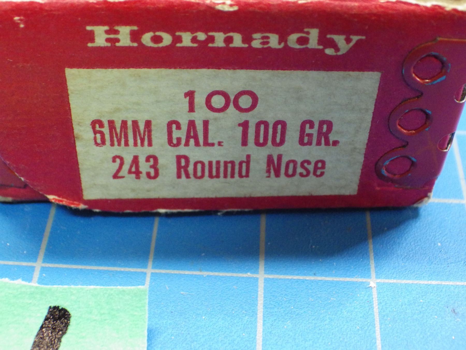 Bullets. , 6MM caliber. 100 gr, 243 round nose, count not confirmed. Appears full.