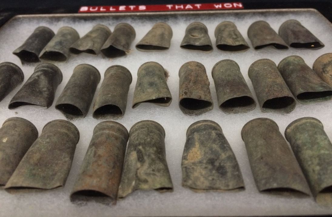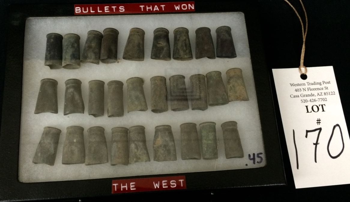 This display is loaded with 28 old .45 revolver shell casings which have been fired (many have U.S. arsenal and date marks visible showing 1870s - 1890s)! The .45 pistol was widely carried by U.S. Soldiers during the Indian War period of the Southwest. They came out of the old Frontier Relics Museum (Orville Mickens estate). Mr. Mickens found most of the items in his museum while tromping around historical Western areas in Arizona and New Mexico. Please look at pics to see what all you will get.Shipping: There will be a $5 handling / packaging fee for shipping this lot. The actual cost of postage will be added on top of that.