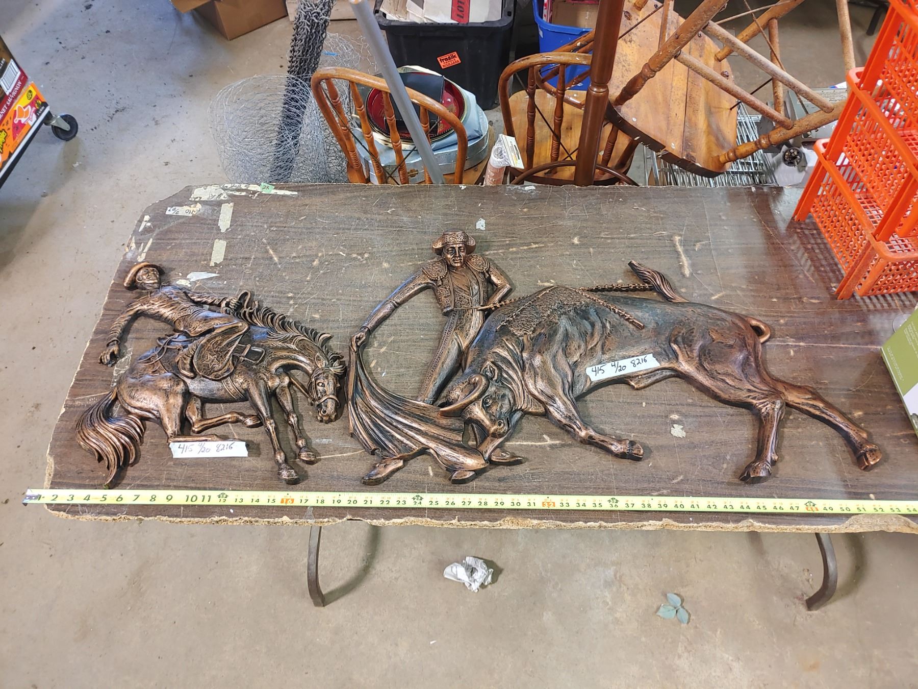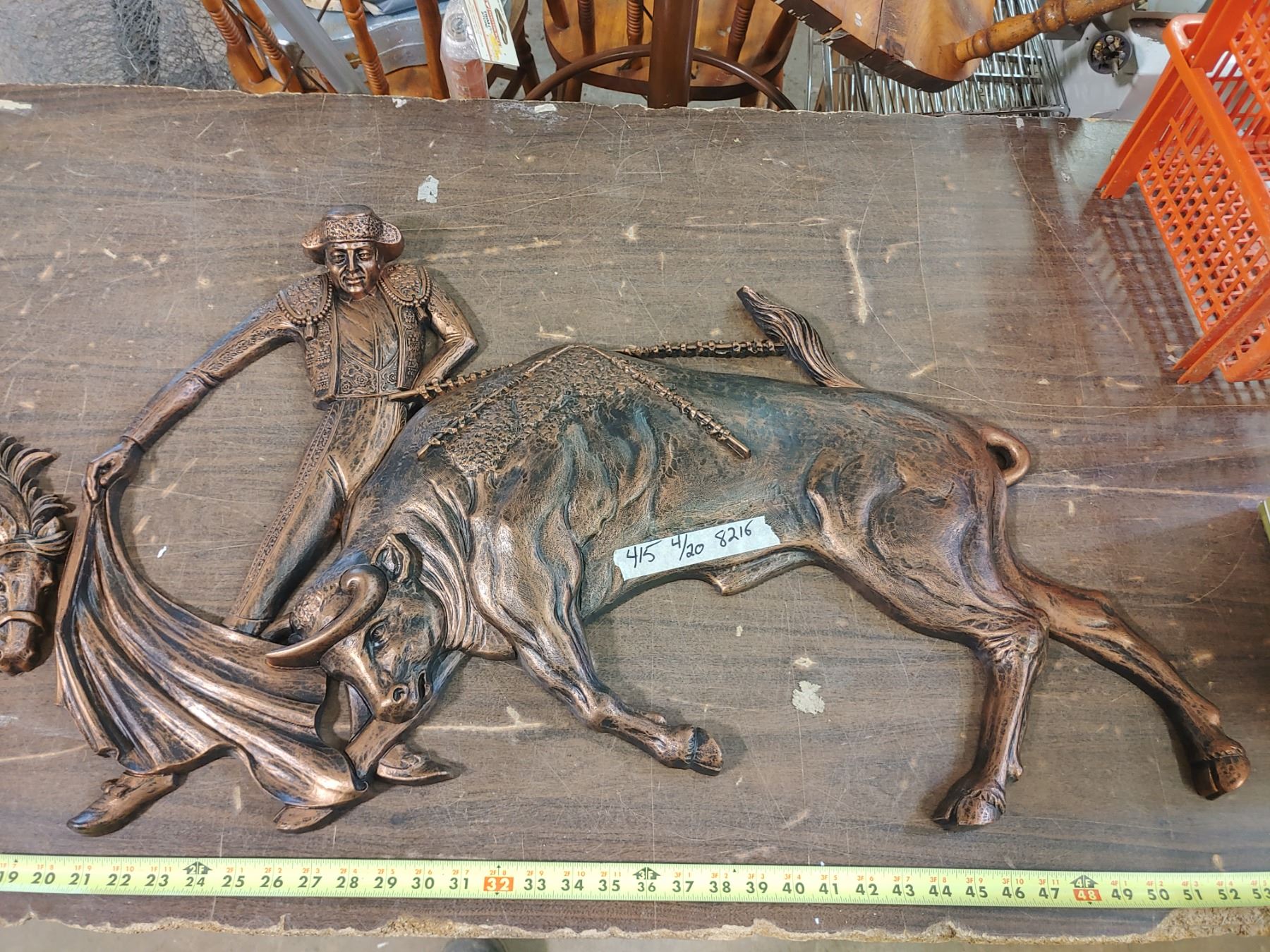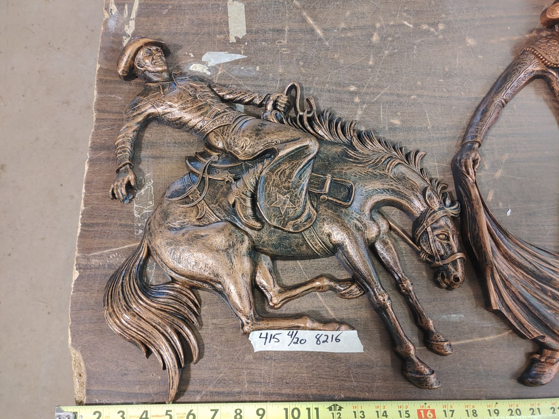 Bullfighter and Cowboy on Bronco Copper Colored Wall Art