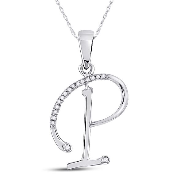 Round Diamond Initial P Letter Pendant 1/12 Cttw 10KT White Gold