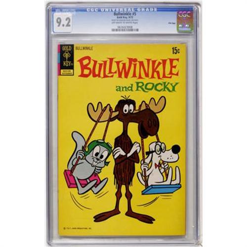 <B>Bullwinkle #5 File Copy (Gold Key, 1972) CGC NM- 9.2 Off-white to white pages.</B></I> CGC notes, "From the Random House Archives." Overstreet 2007 NM- 9.2 value = $70. CGC census 10/07: 1 in 9.2, 2 higher.<BR><BR><b>Shipping:</b> Comics - Slabbed (certified) (<a target="_blank" href="http://www.heritageauctions.com/common/shipping.php">view shipping information</a>)