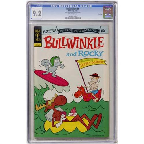 <B>Bullwinkle #6 File Copy (Gold Key, 1973) CGC NM- 9.2 Off-white pages.</B></I> CGC notes, "From the Random House Archives." Overstreet 2007 NM- 9.2 value = $70. CGC census 10/07: 7 in 9.2, 1 higher.<BR><BR><b>Shipping:</b> Comics - Slabbed (certified) (<a target="_blank" href="http://www.heritageauctions.com/common/shipping.php">view shipping information</a>)