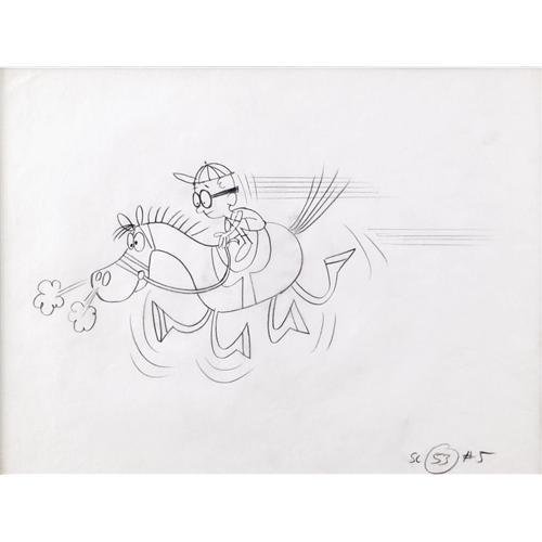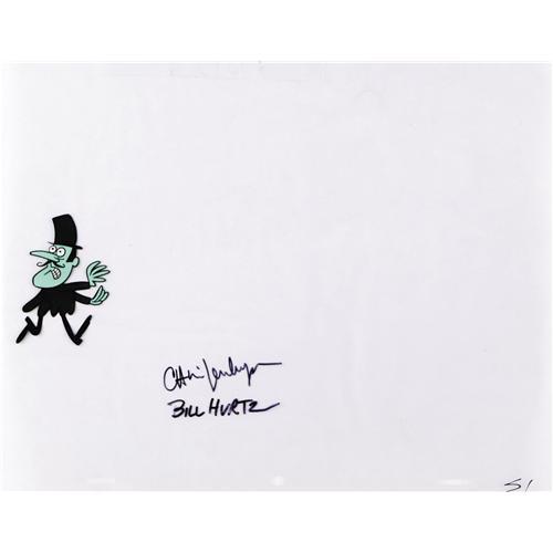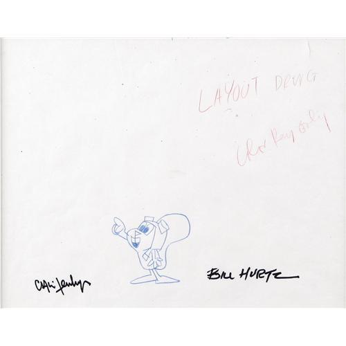 <B>Bullwinkle Show Production Cel and Layout Drawing Animation Art Group (Jay Ward, circa 1960s).</B></I> Fans of "Rocky and Bullwinkle" and "Dudley Do-Right", rejoice! Here's a wonderful group of exciting items from those beloved animated programs. First, here's a set of five sequenced production cels with four matching pencil drawings, of that hissable villain, Snidley Whiplash, from "Dudley Do-Right" segment of the "Bullwinkle Show"; the best cel of the group has been signed by director Bill Hurtz and head writer Chris Jenkyns. Next up, a set of two matted pencil drawings, one of Rocket J. Squirrel and one of Professor Peabody's young assistant, Sherman, on horseback. The Rocky drawing is signed by Jenkyns. Both groups of art come with certificates of authenticity from Stay Tooned Gallery. Also included in this fun lot is a signed payroll check from Jay Ward Productions, signed by Ward, plus a file copy of the 1969 <B>Dudley Do-Right Comes to the Rescue!</B></I> coloring book. And, as a final enticement, we offer a copy of <B>Cartoonews</B></I> #20, focusing on the art of George Evans. This publication is in Very Good; all other items are in Excellent condition. <BR><BR><B>Important notice:</B> Heritage usually auctions material at the rate of 200-250 lots per hour. On some occasions eBay Live bid software or the Internet may not be able to keep up with the pace of the auction. We recommend placing a realistic absentee bid now as insurance to avoid disappointment. Occasionally the auctioneer may eliminate or reject an eBay Live bid, and the auctioneer may also reopen a lot after the close of the eBay live bidding (usually because we missed an audience bid), and may reject your bid even if it shows you as the winning bidder. By bidding via eBay Live, you agree that Heritage may award the lot to another bidder at its sole discretion under the circumstances described above or any other reasonable circumstances. Since eBay bids are not shown to us until we open the lot on the floor, we treat those bids just like floor bids. In most cases the floor responds before the eBay bid is presented to us, due to Internet lag time, so for consistency we have made it a policy that floor bids are always considered first over tie eBay live bids. Also please note that all Heritage lots purchased through eBay Live carry a 22.5% Buyer's Premium. Please make sure you read the Terms and Conditions before you bid. This lot is being auctioned in conjunction with a live floor auction by Heritage Auction Galleries. All final auction and invoice information will be supplied by Heritage Auction Galleries, and all other information should be considered preliminary. Lot:41001 <BR><BR><B>Winning Notification and Billing:</B> After the FINAL session in this auction is complete, Heritage will send e-mail and snail mail invoices. This process normally takes several days. All final auction and invoice information will be supplied by Heritage Auction Galleries, and all other information should be considered preliminary. <BR><BR>This auction will be conducted on a live auction floor and over the Internet through eBay Live. If you choose to place an absentee bid, please take a moment to <font color='#0000ff'><u><a href='http://pages.ebay.com/liveauctions/help/before/laabsentee.html'>learn how eBay Live absentee bidding works</a></u></font><font color='#000000'>