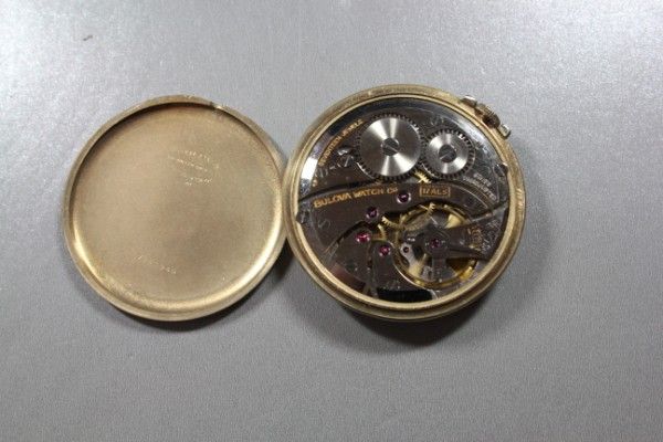 Bulova 17J, 12S 10K RGP Case Watch, Case & Dial ok, Missing Crown, Runs