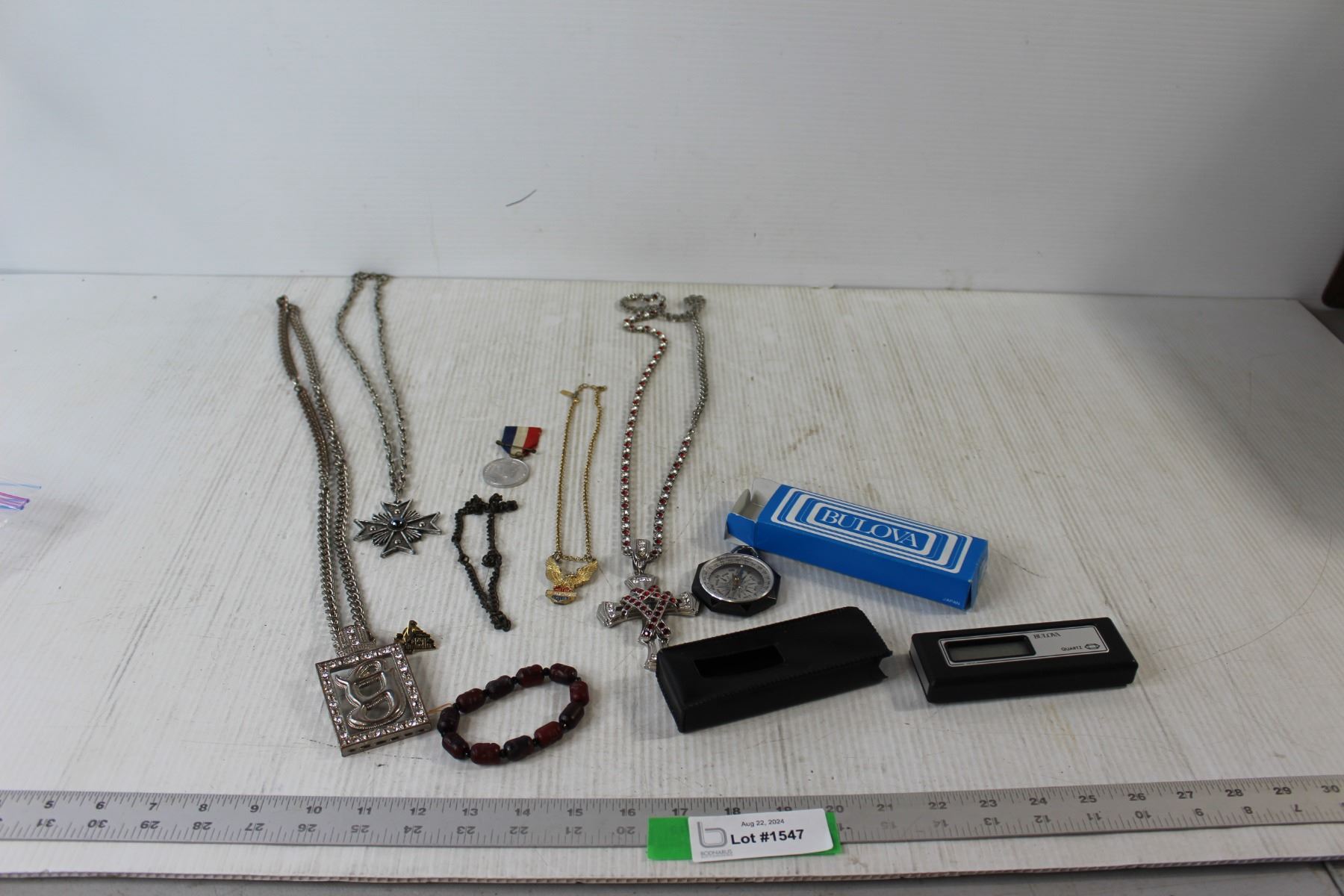 Bulova Alarm Clock, Assorted Accessories And Jewelry