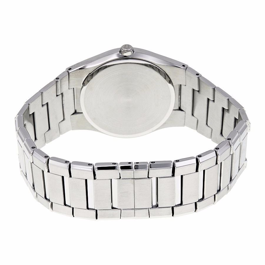 Dress watch, Three-hand Japanese quartz movement displaying polished gunmetal hour and minute hands with luminous accents and polished sweep seconds, 8 genuine diamond hour markers, Applied and polished gunmetal 'Bulova' logo at 12, Polished gunmetal hour-batons with luminescent fill mark quarter hours, White indices mark outer minute track, Analog date display at 3, Brushed and polished silver-tone stainless steel integrated case with octagon-shaped crown, Stainless steel caseback, Water resistant