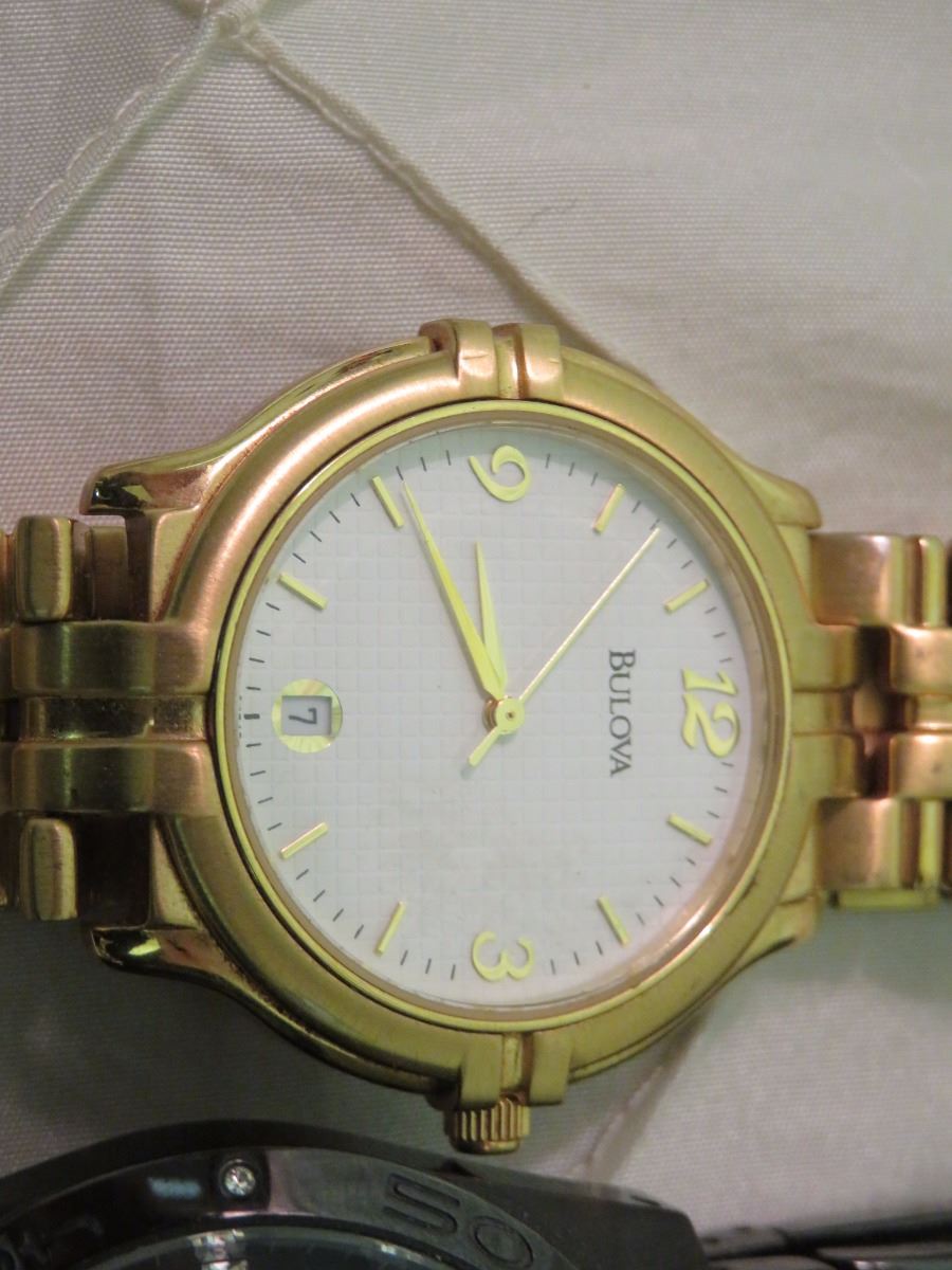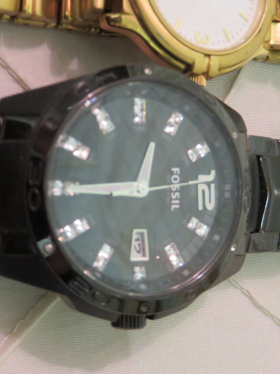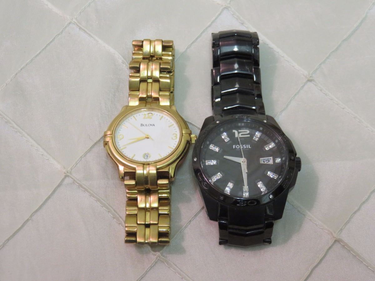 Bulova: 97B45 Model, batteries included. Fossil: no batteries.