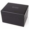 Black chronograph dial with vintage 1950s styling distinguishes this men's watch from the Murren collection by Bulova. The chronograph watch has a Swiss-made automatic movement set in a 41mm rose-gold-tone ion-plated stainless steel case topped by a double-curved, anti-reflective sapphire crystal. The dial includes a day/date window, applied markers, and luminous hands. The men's chronograph watch is water-resistant to 30 meters and has a brown leather strap secured with a push-button deployment clasp. This watch is brand new and comes with box, tags, manual and a valid three-year manufacturer's warranty from Bulova. When it comes to pre-eminent Swiss watchmaking, Bulova has been a leader in the field since 1912. The Bulova Accu-Swiss brand exemplifies the very best Swiss-made craftsmanship with precision automatic, mechanical and quartz movements, premium crafted cases and bands along with anti-reflective sapphire crystals on each and every one of their watches.