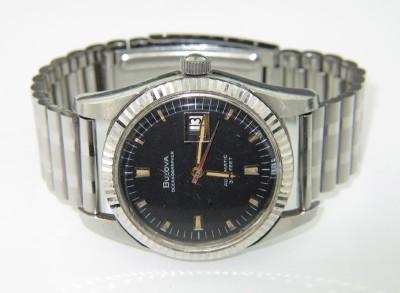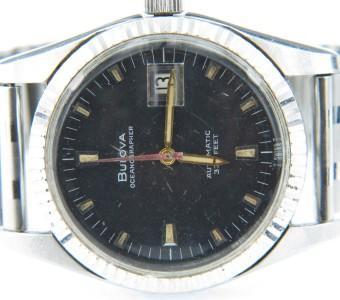 Bulova Stainless Steel Automatic Men watch.The total watch's weight is 79.2 grams.The measurements of watch head is 34 x 36 mm and 7 mm thick.The length of watch: 6.5".water Resistant.Swiss Made.Chain is 16 mm wide