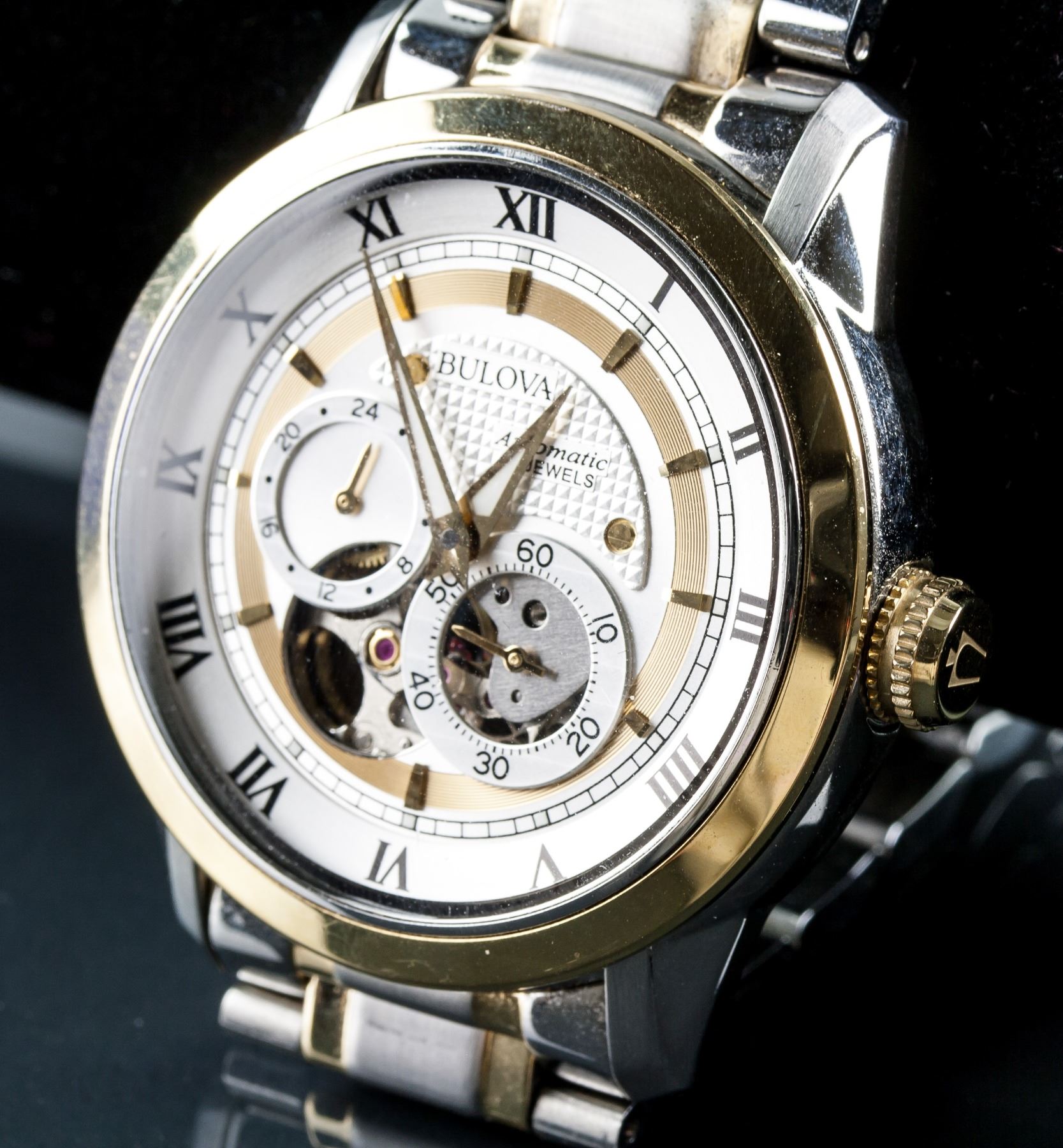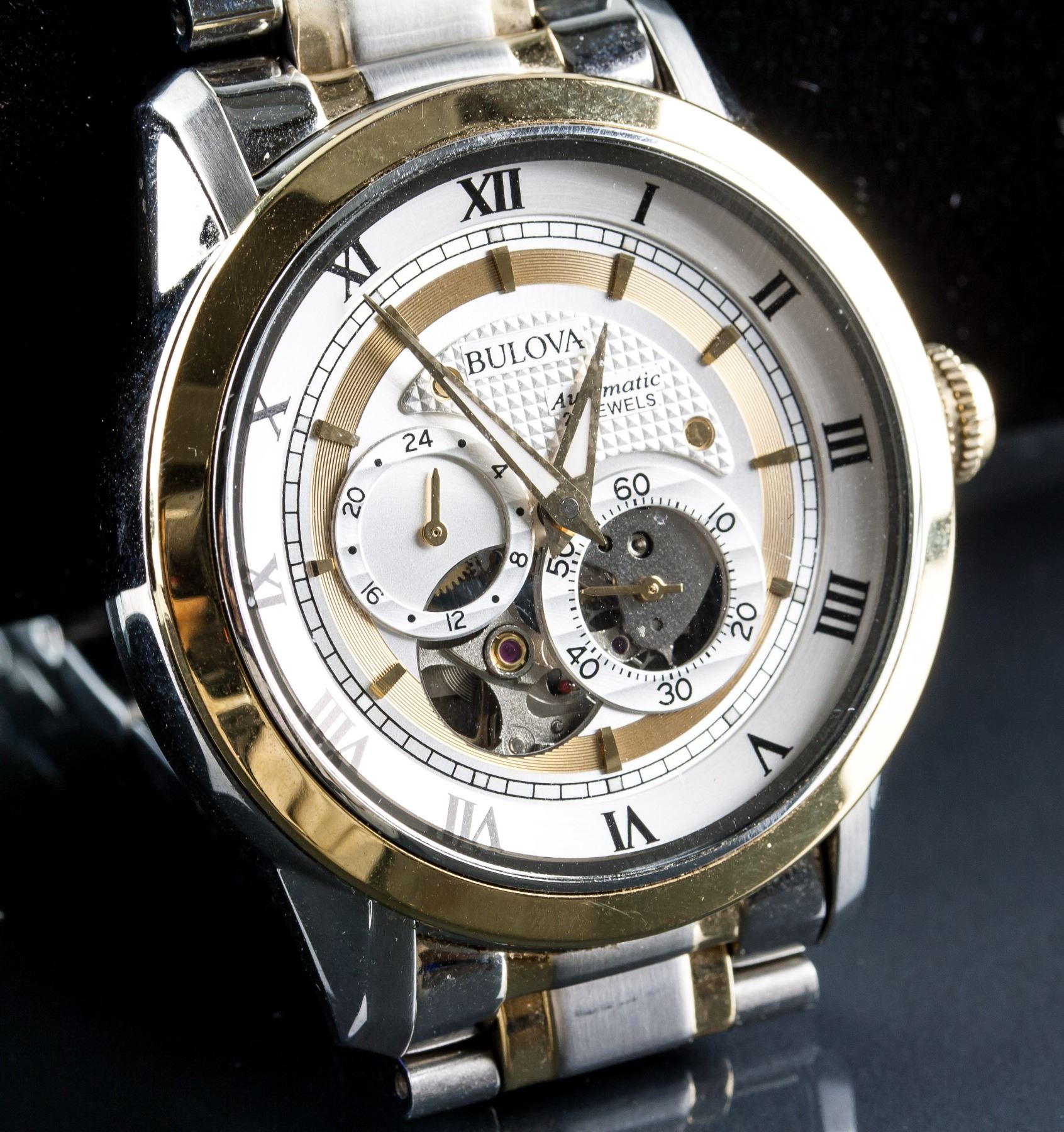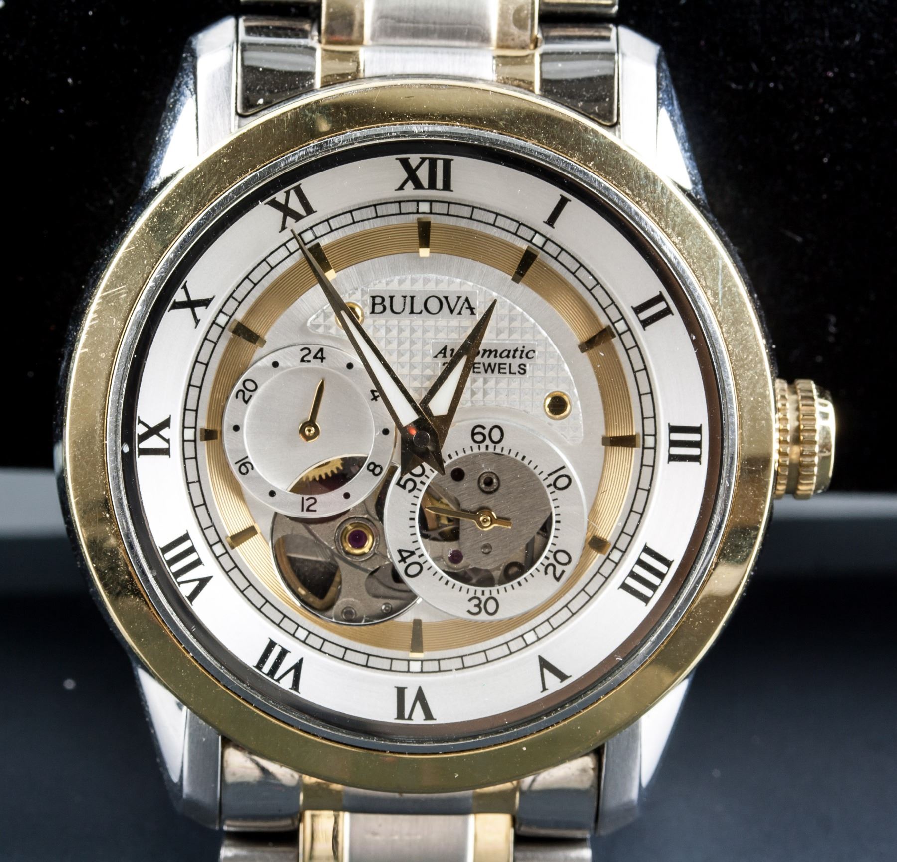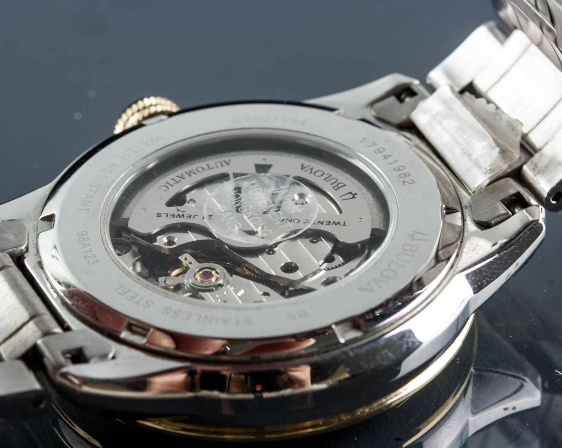 Bulova stainless steel automatic watch; 21 jewels, water resistant; 17941982; with stainless steel band