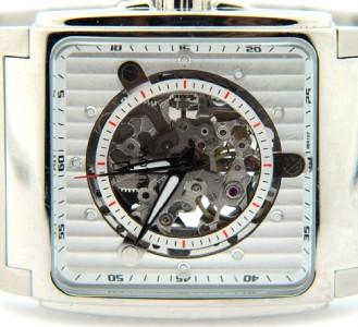 Bulova Stainless Steel, Skeleton Men watch.The total watch's weight is 184.2 grams.The measurements of watch head is 36 x 42 mm and 11 mm thick.The length of watch: 6.5".water Resistant