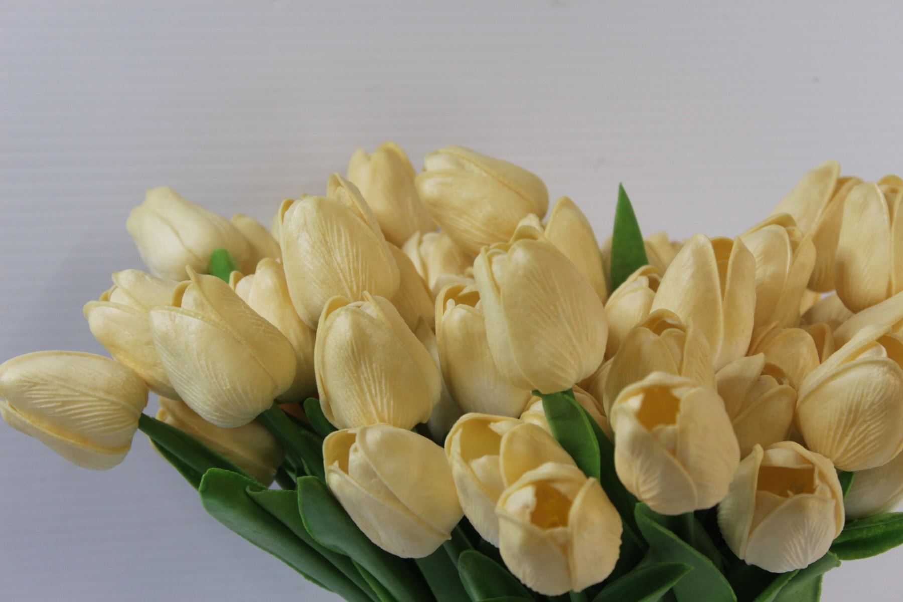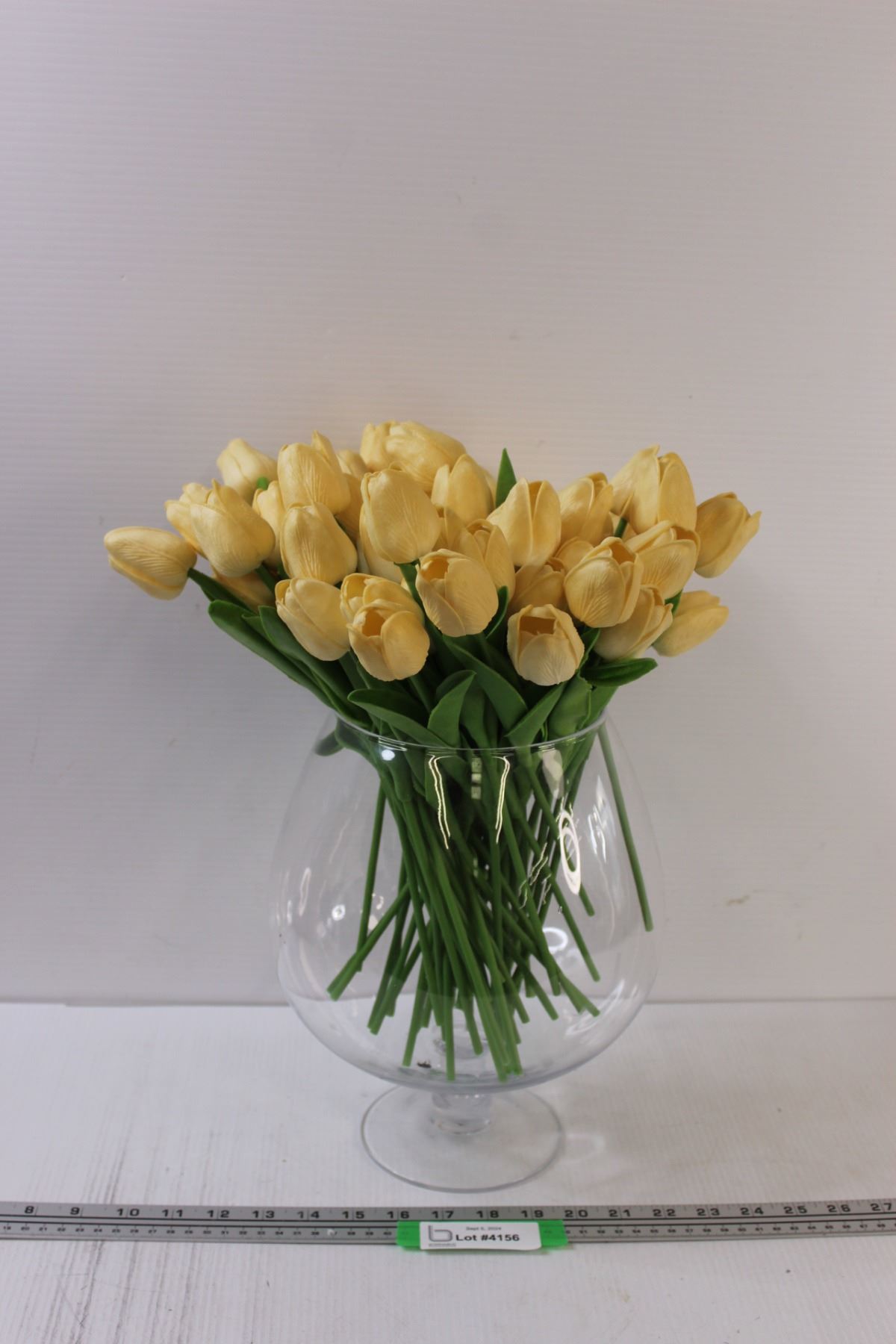 Bunch of Off-White Faux Tulips in Glass Vase - Total Height 16" Tall w/Vase