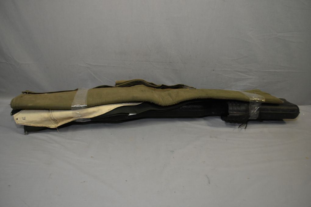 Bundle Lot : Blk Plastic Kolpin Gun Boot & extra back piece - three gun socks - one canvas gun case marked U.S.