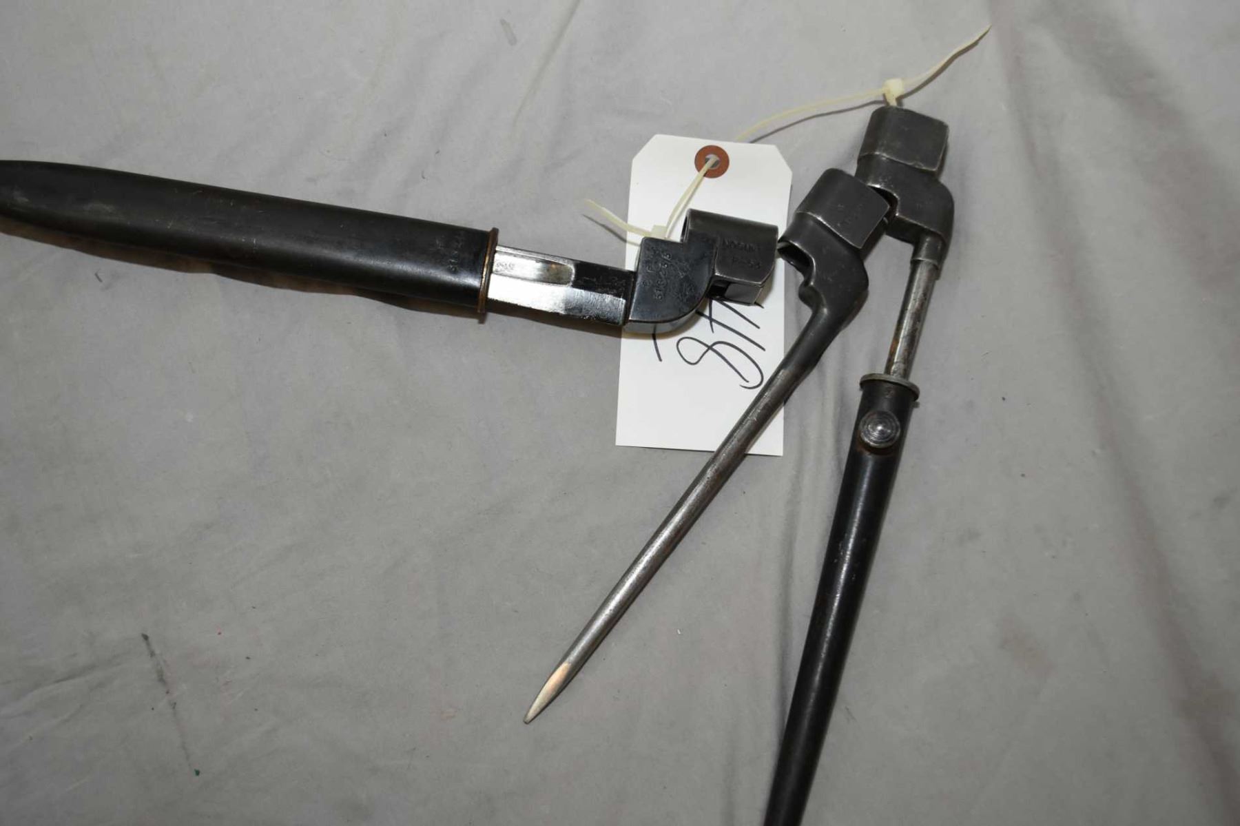 Bundle Lot : Three Lee Enfield Bayonets [ # 9 MK I w/scabbard - # 4 MK II* Spike w/scabbard - # 4 MK II no scabbard ]