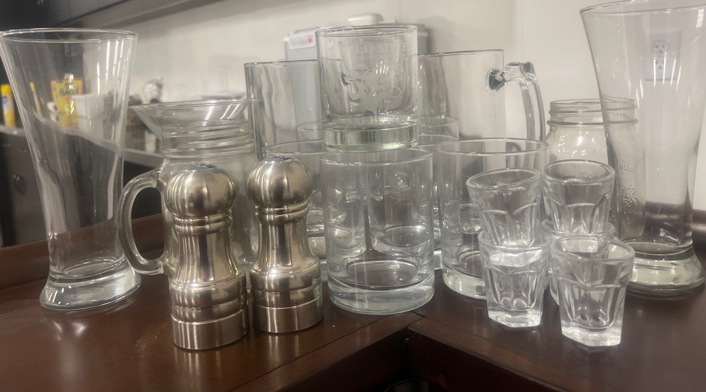 Bundle Of Assorted Barware- SNP Shaker, Pint Glasses, Shot Glasses, Beer Mugs