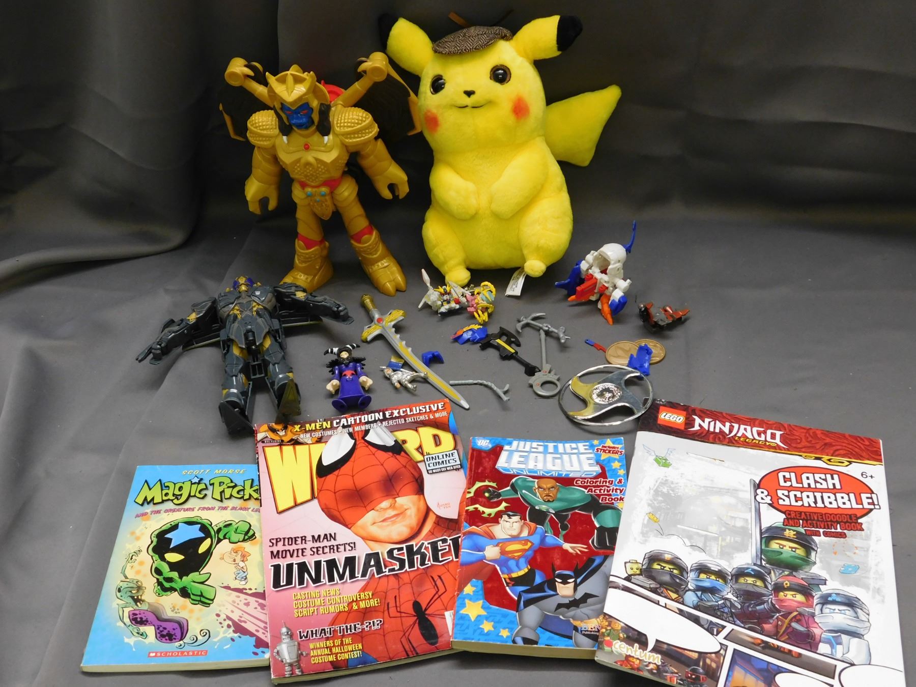 Bundle of Assorted Toys Gundam, Power Rangers, Transformers, Pokemon, Comics