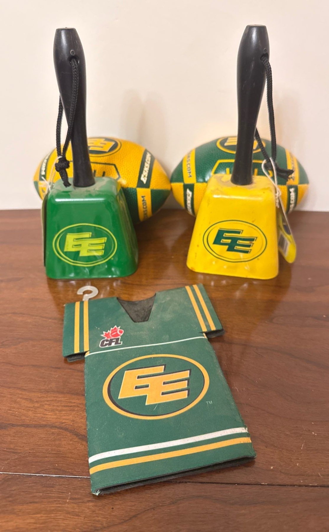 Bundle of Edmonton Eskimo Sports Memoribilia- Mini Balls, Cow Bells & More