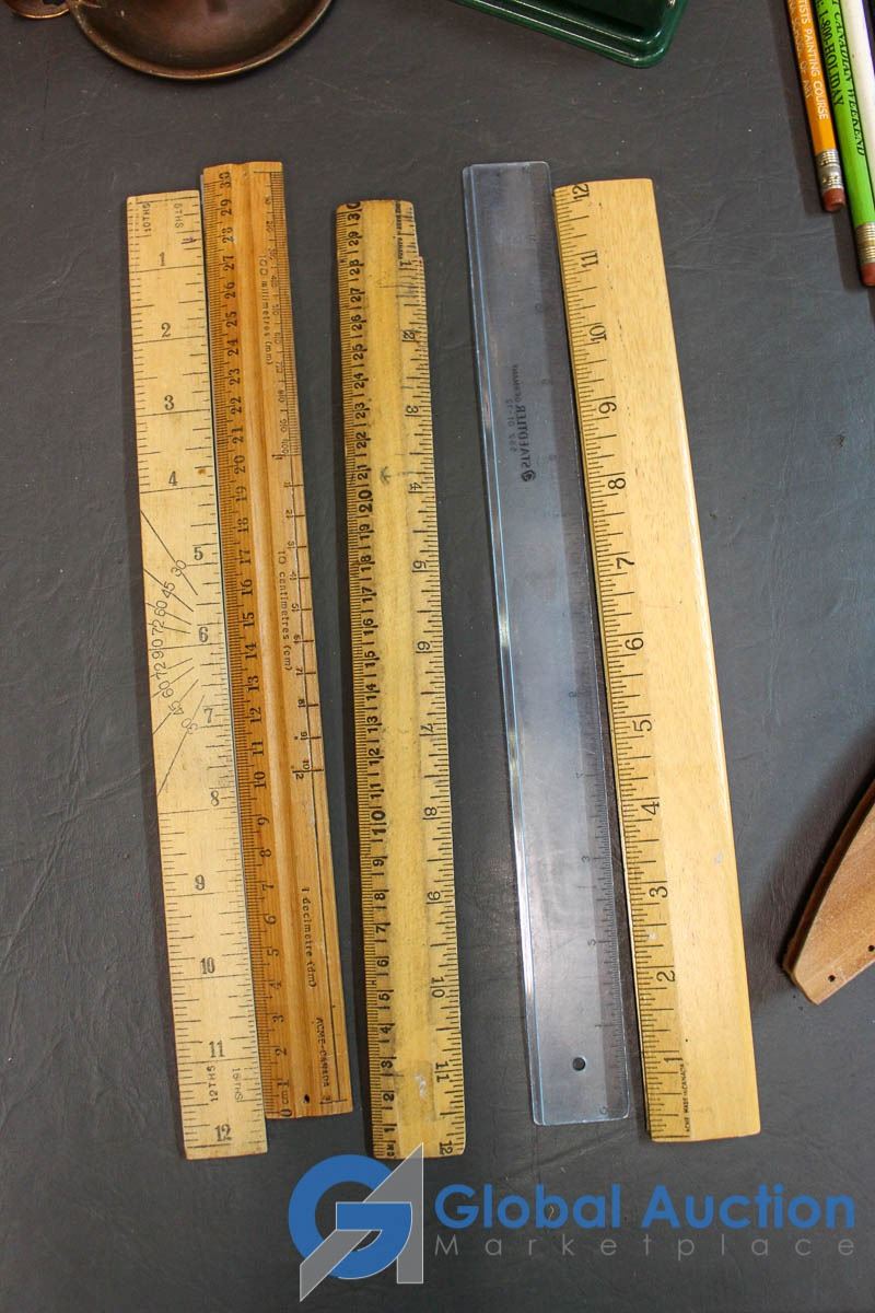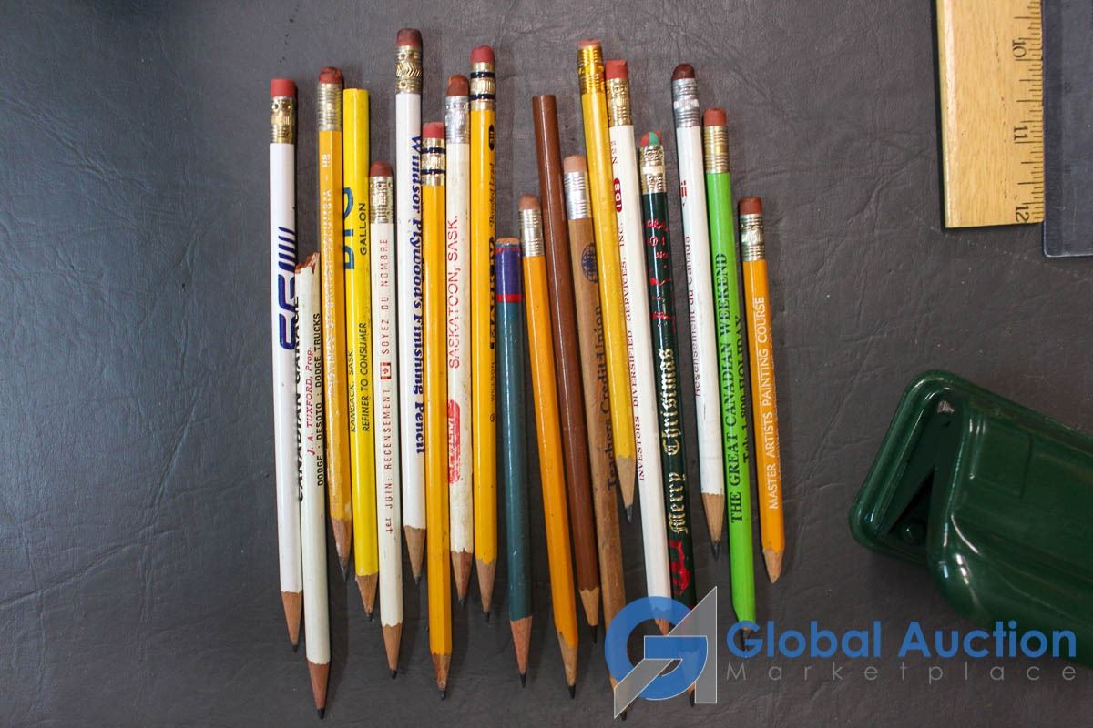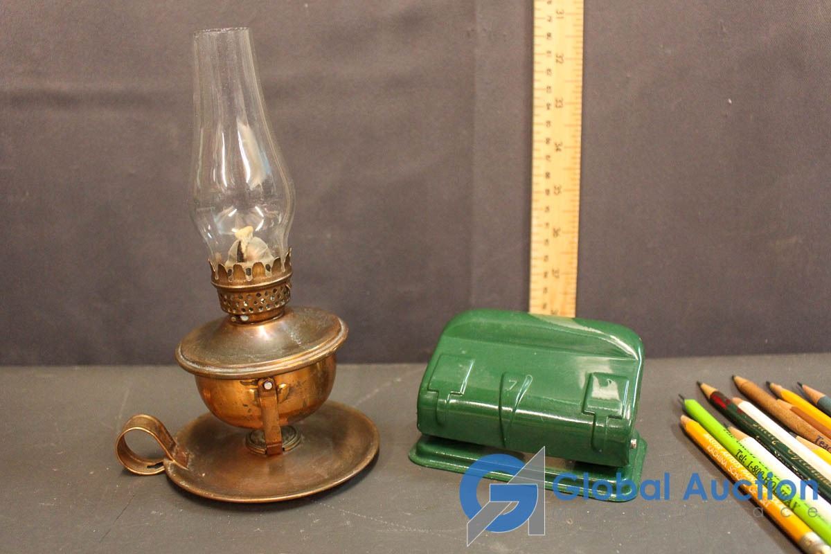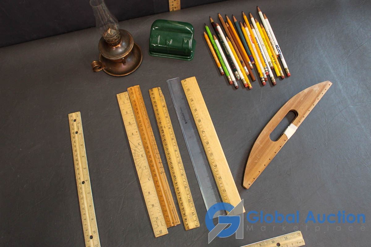Bundle of Rulers, Advertising Pencils, 2-Punch Hold Puncher, Mini Oil Lantern, etc.