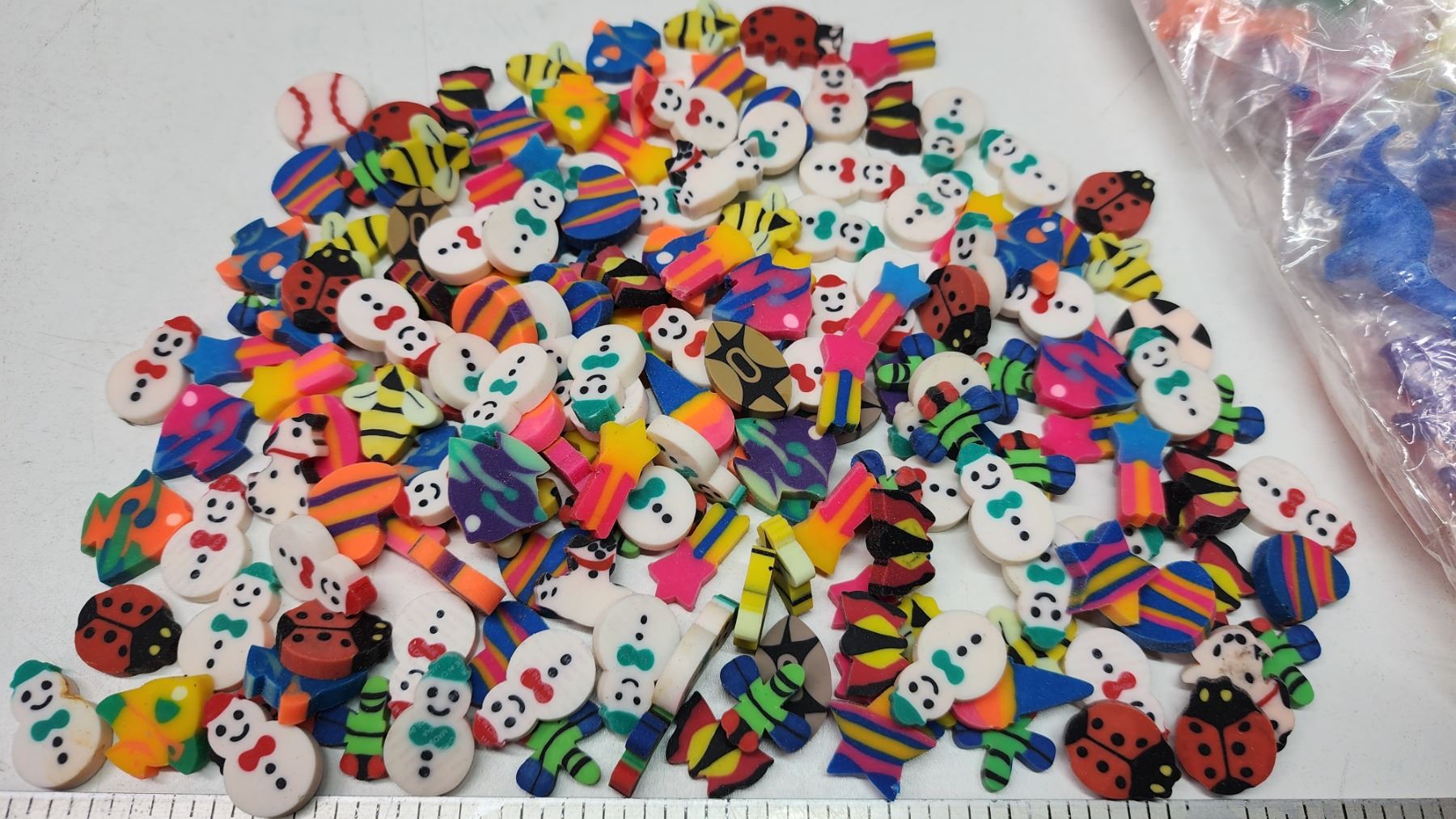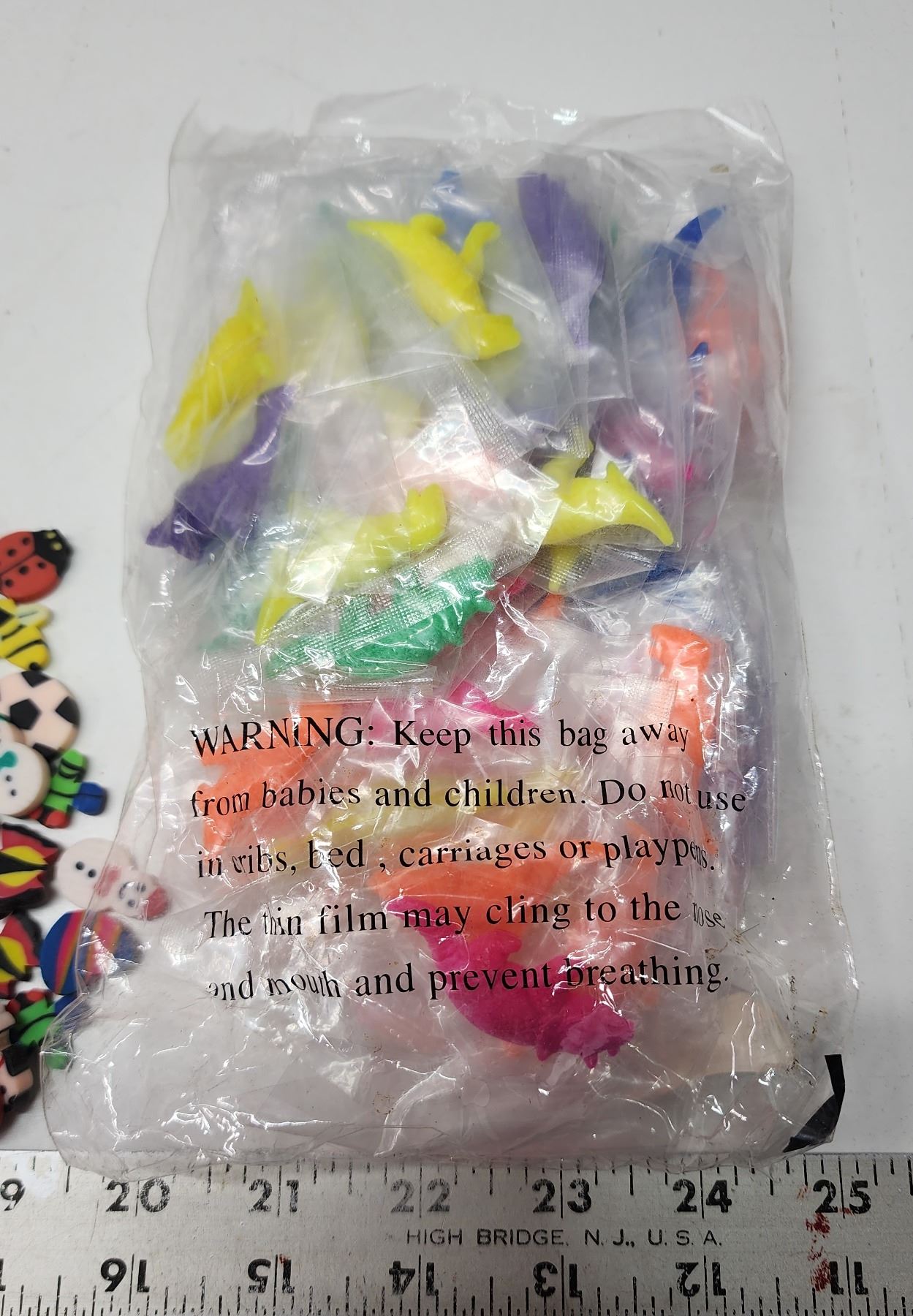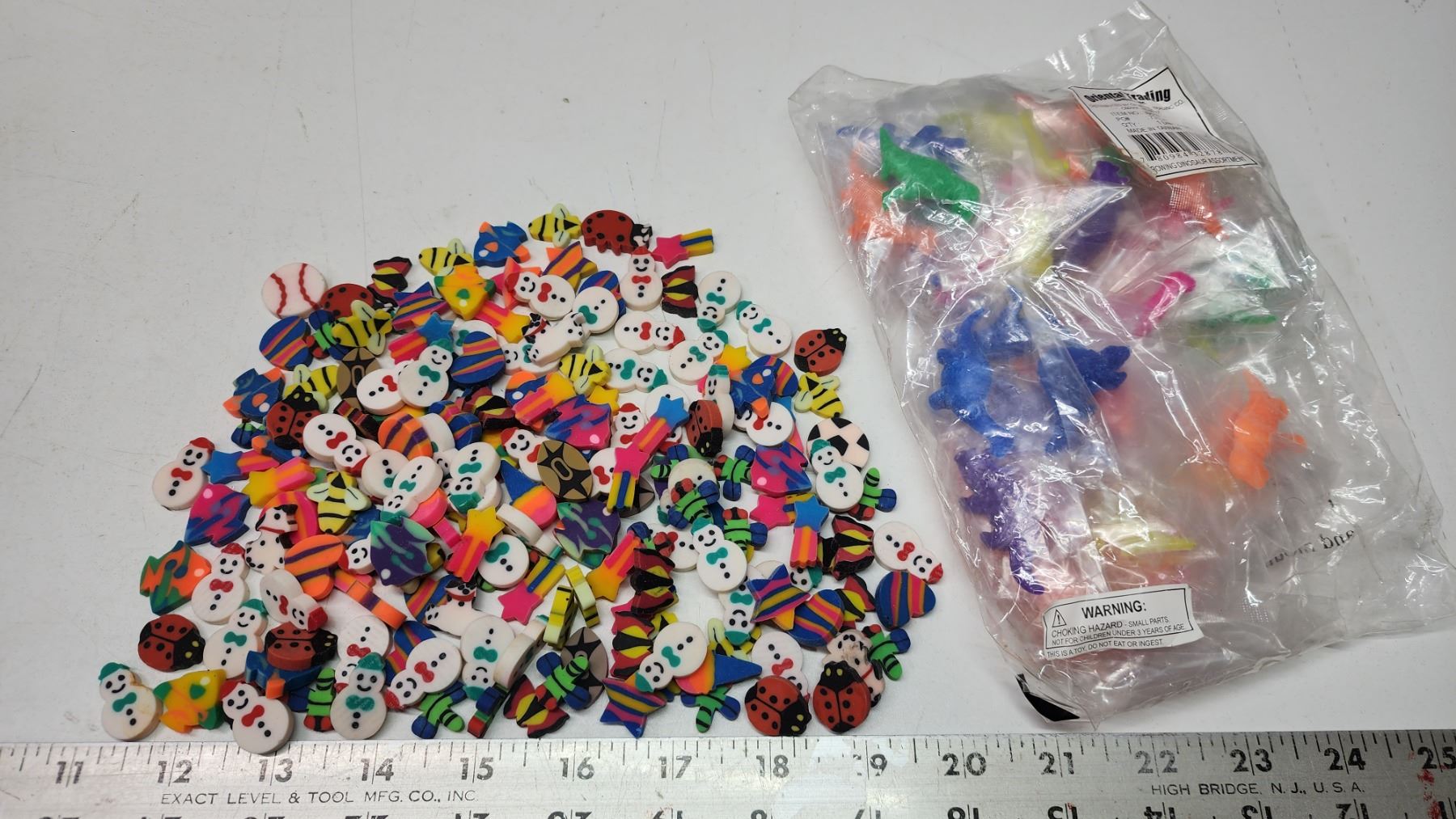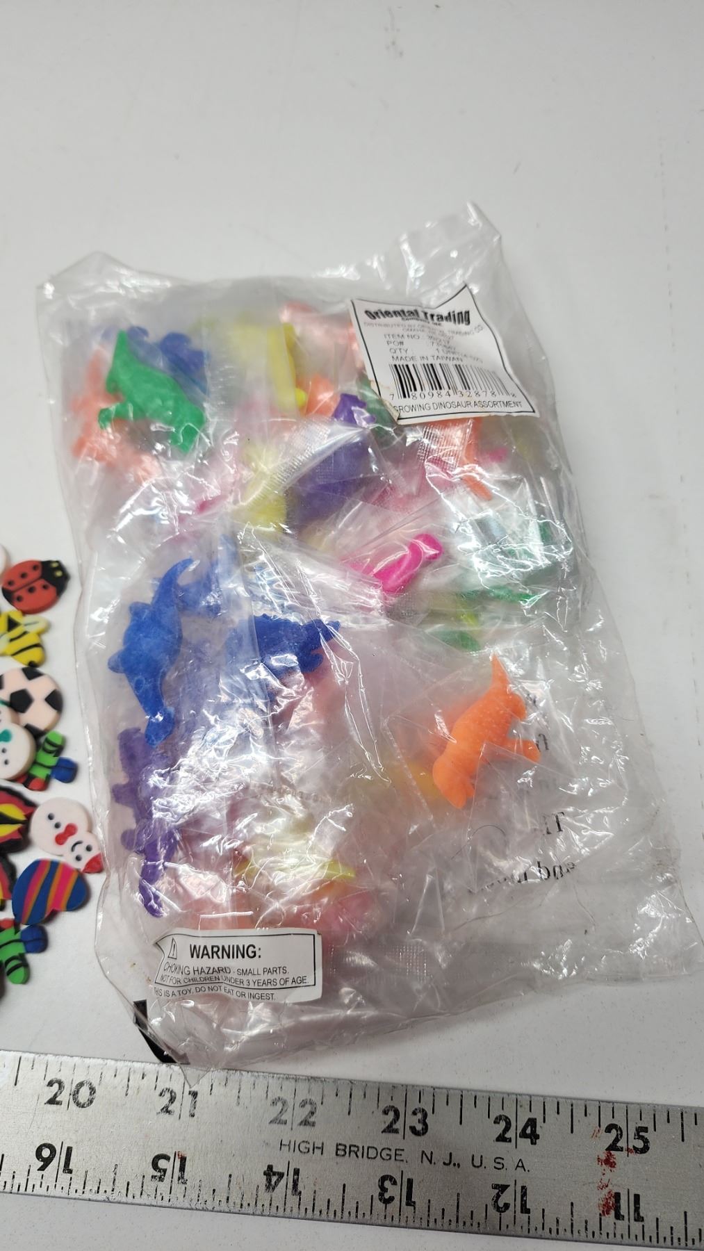 Bundle of mini erasers & bag of growing toy dinosaurs
