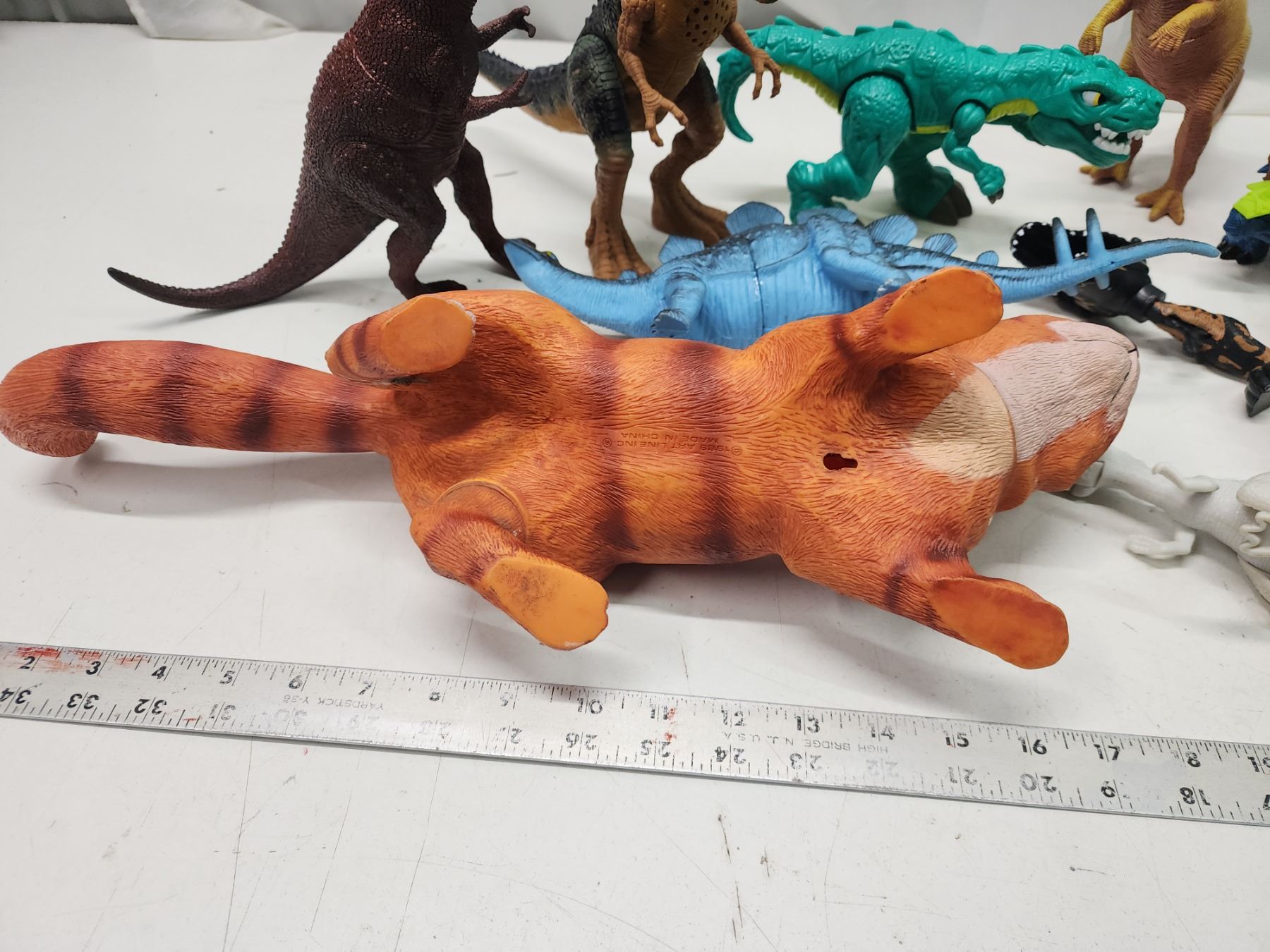 Bundle of toy dinosaurs and large cat