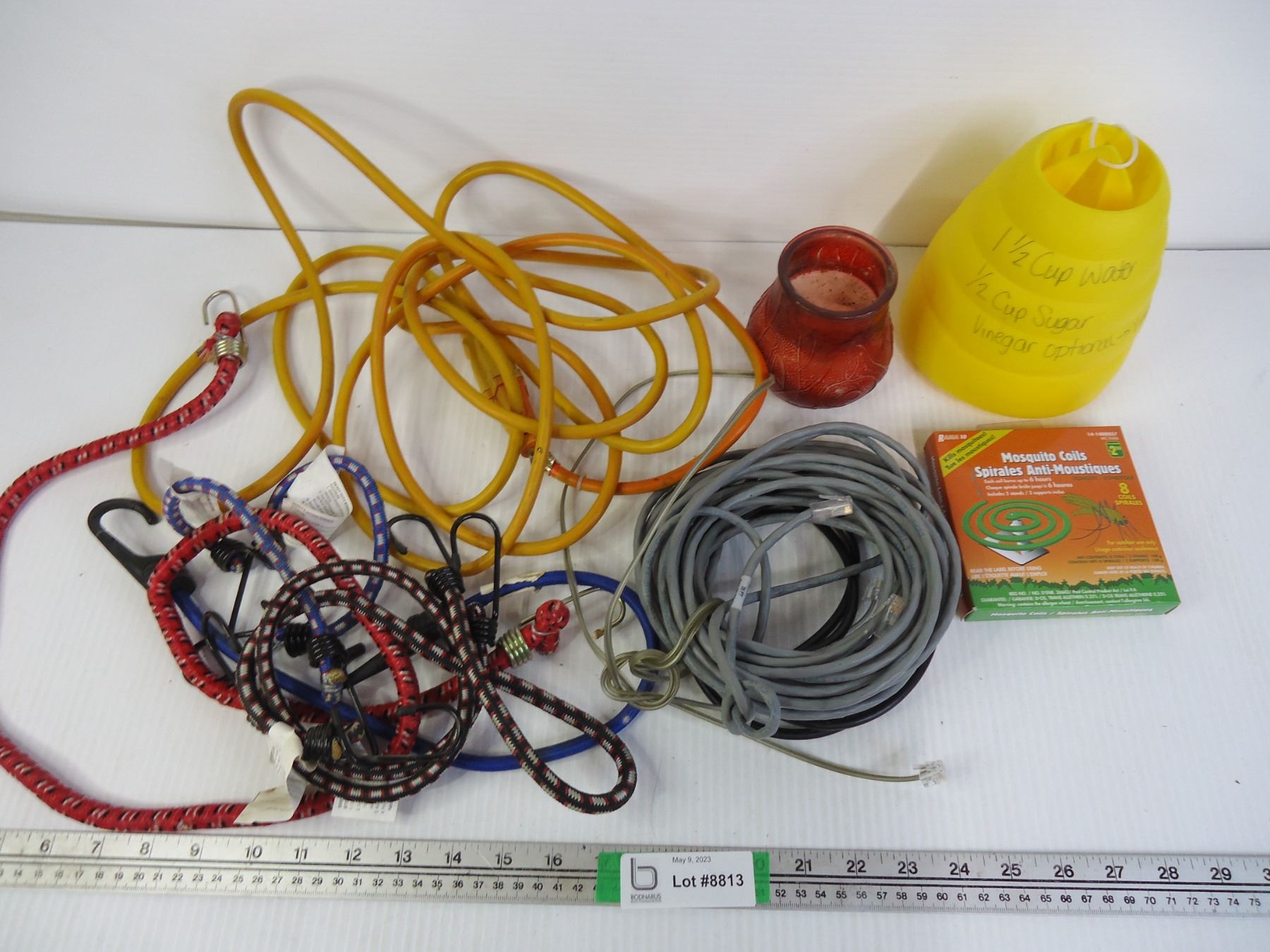 Bungee Cords, Extension Cord, Wasp Trap, Mosquito Coils, Phone Cord, Candle