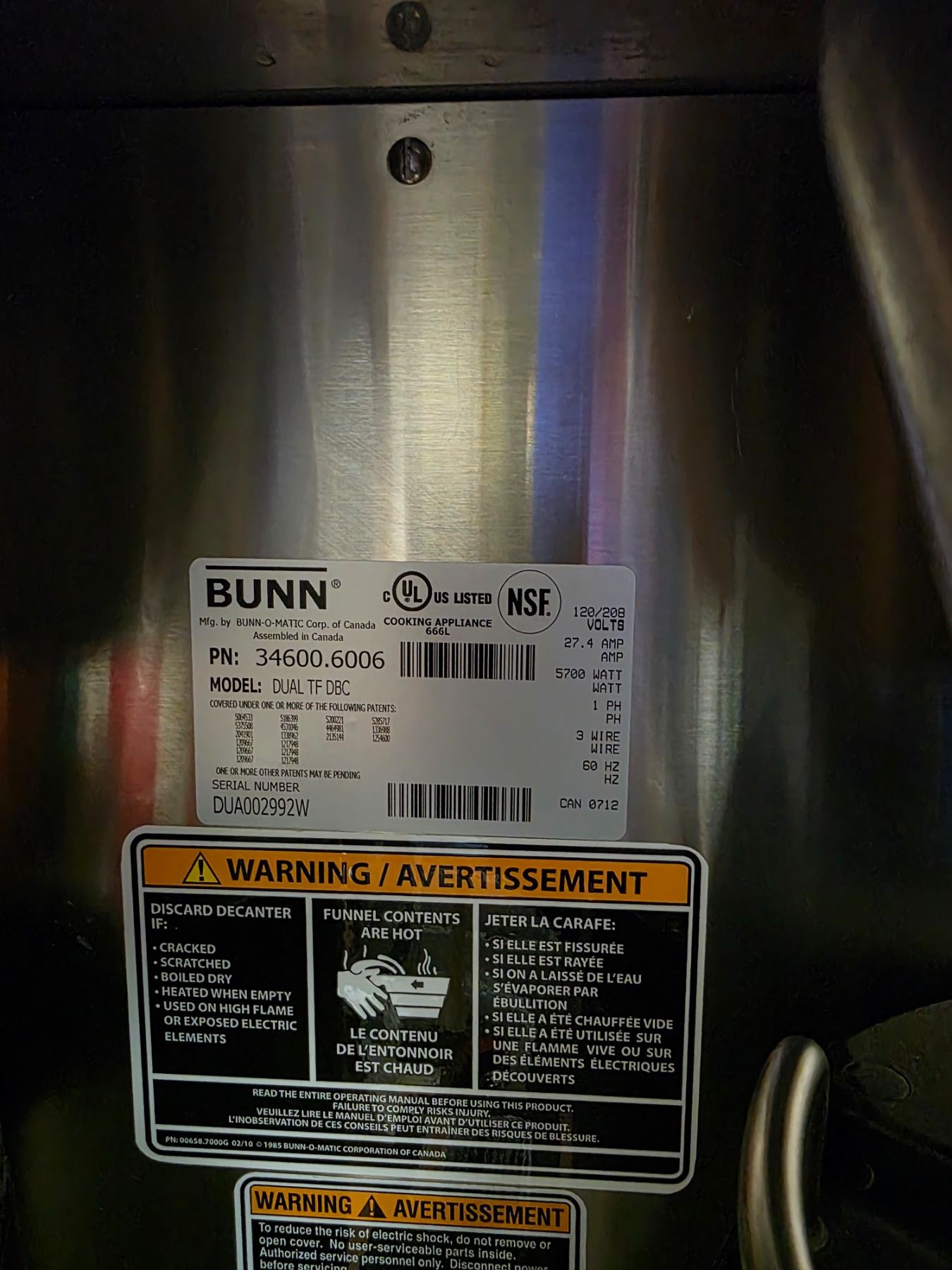 Bunn - Commercial Coffee Brewer - Model: Dual-TF-DBC - excellent condition (Auction Preview/Pickup Location: 19800 Lougheed Hwy, #310, Pitt Meadows, BC V3Y2W1)
