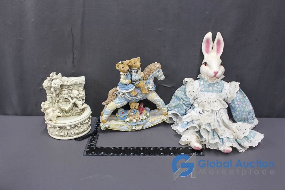 Bunny Doll and Bears on Rocking Horse