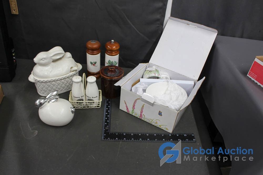 Bunny Serving Dish, Salt & Pepper Sets, and Bunny Trail Set in Box