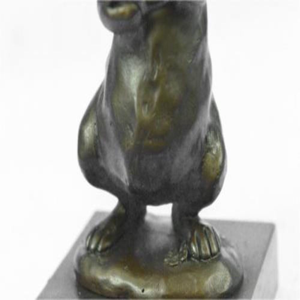 This adorable sculpture shows the relationship between parent and child. Even animals have the natural instinct to love and nature their children. The baby bunny is so small in comparison to his mother. The mother stands on her back legs and cradles him in both arms. The baby bunny is in the sweet sanctuary of his mother arms and falls asleep wearing a slight smile. This is a beautiful and touching sculpture and makes great for decor around spring time or Easter. This sculpture was cast using the Lost Wax Method and is mounted on a marble base. Bronze Dimensions with Marble Base: Height 7 X Width 4 inches. Weight: 3 LBS.