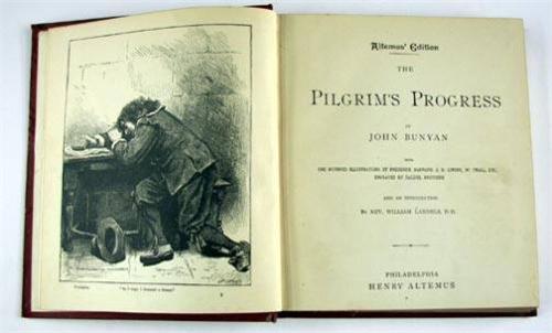 Bunyan's Pilgrim's Progress, by John Bunyan, 100 illustrations including works by Frederick Barnard, J.D. Linton, W. Small and the Danziel Brothers., published by Henry Altemus of Philadelphia, 1890, from the Estate of Charles Bunnell, Condition: Very Good, minor cover wear, several page with a 1" tear inside - does not tear into the text, no dust jacket