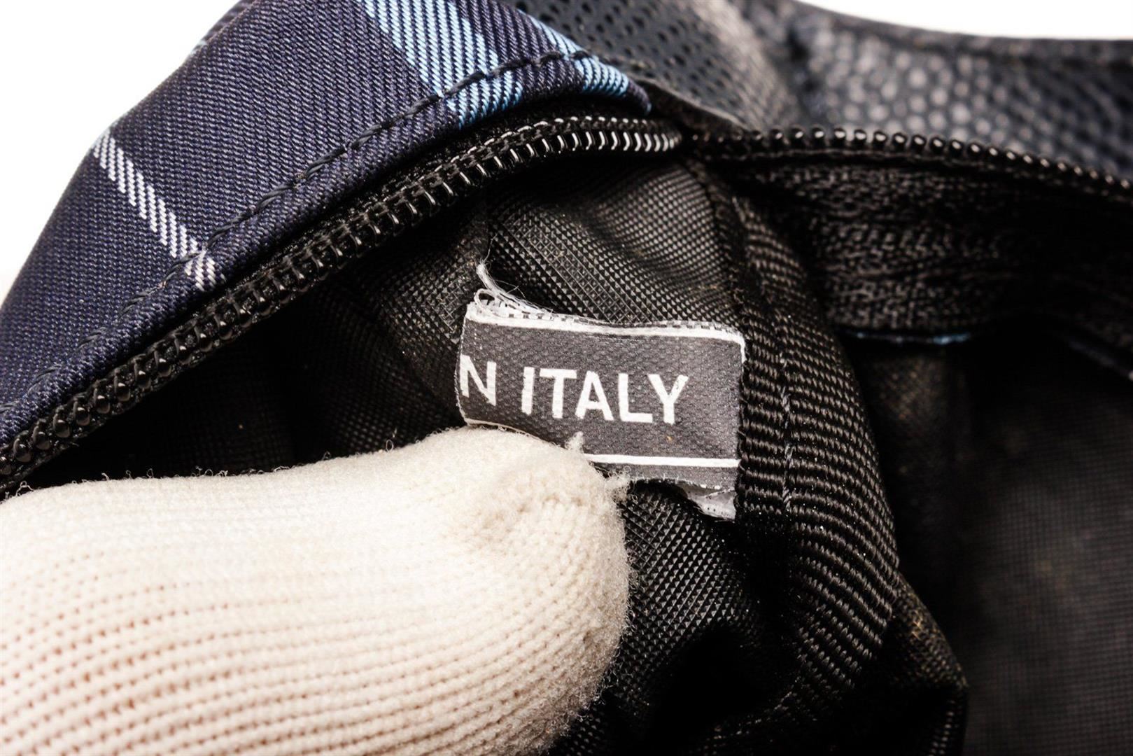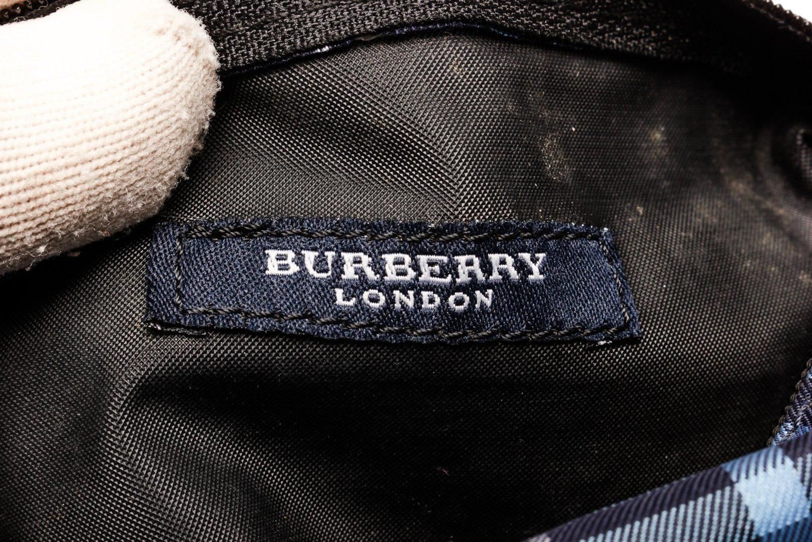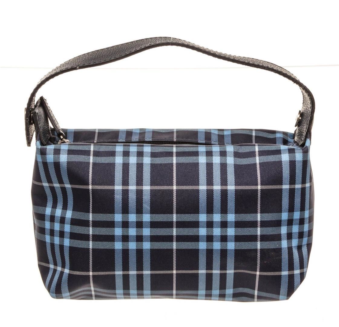 Burberry Blue Canvas Small Shoulder Bag with optional tan leather shoulder or crossbody straps, blue canvas lining, optional interior pouch with zip top closure,