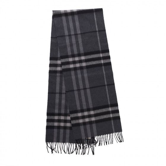 Charcoal Burberry scarf is 100% cashmere and is a traditional Burberry check, a true classic in dark grey.