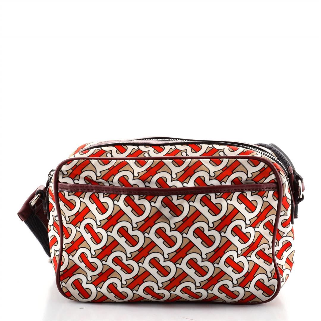 One Burberry Crossbody Bag TB Monogram Nylon. Item is sold AS-IS. All available information is listed in the description and shown in the photo. Burberry Crossbody Bag TB Monogram Nylon. Odor in interior. Small stains, creasing and darkening on exterior, minor wear on base corners, fraying on strap, scratches on hardware. 78848