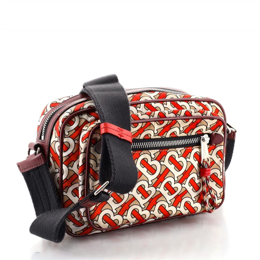 One Burberry Crossbody Bag TB Monogram Nylon. Item is sold AS-IS. All available information is listed in the description and shown in the photo. Burberry Crossbody Bag TB Monogram Nylon. Odor in interior. Small stains, creasing and darkening on exterior, minor wear on base corners, fraying on strap, scratches on hardware. 78848