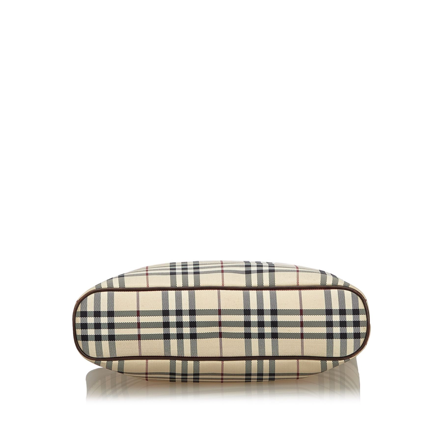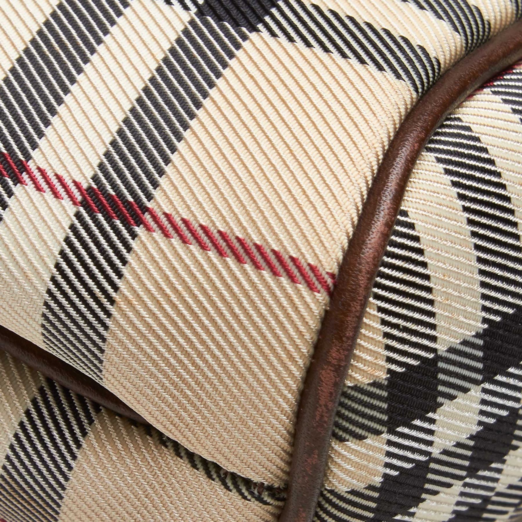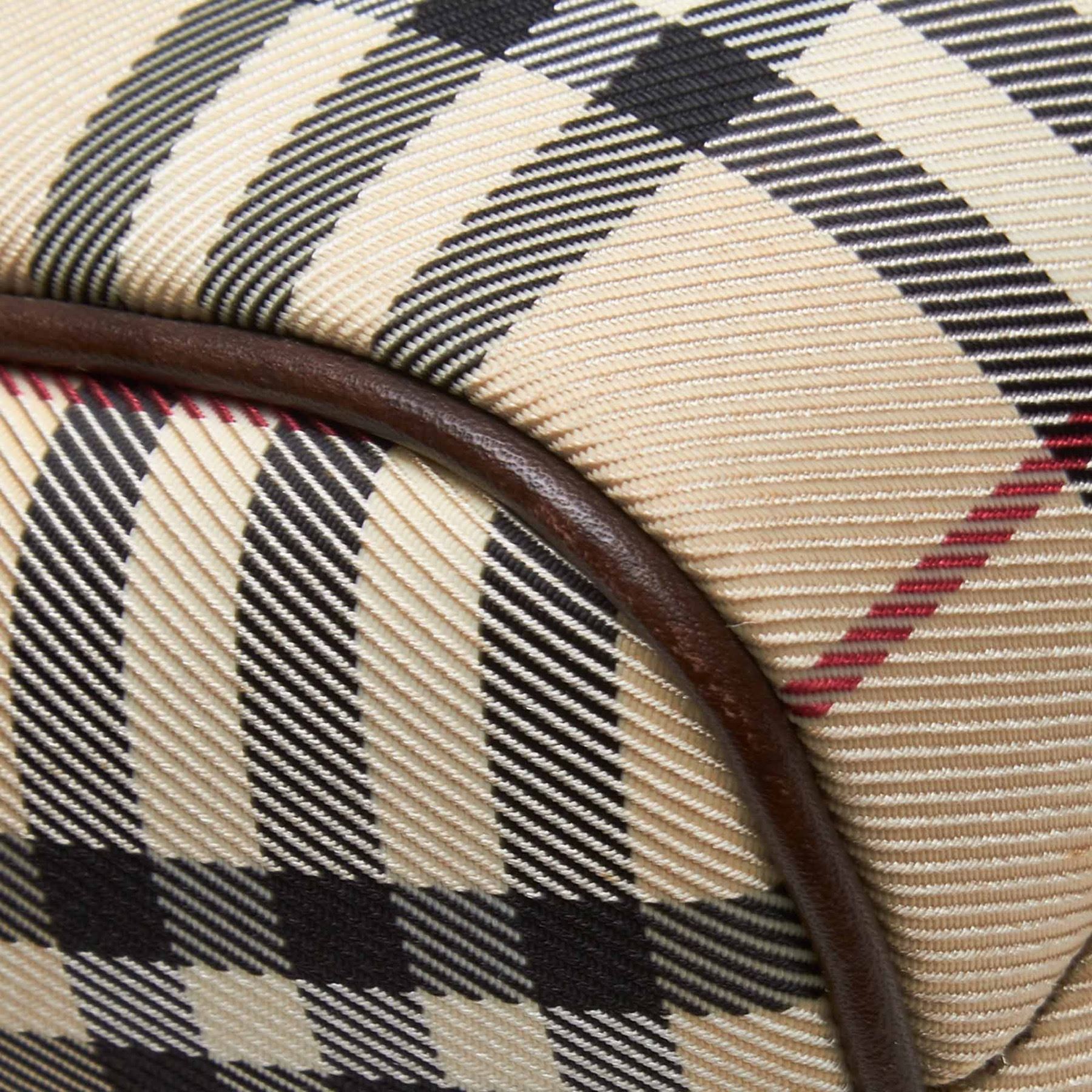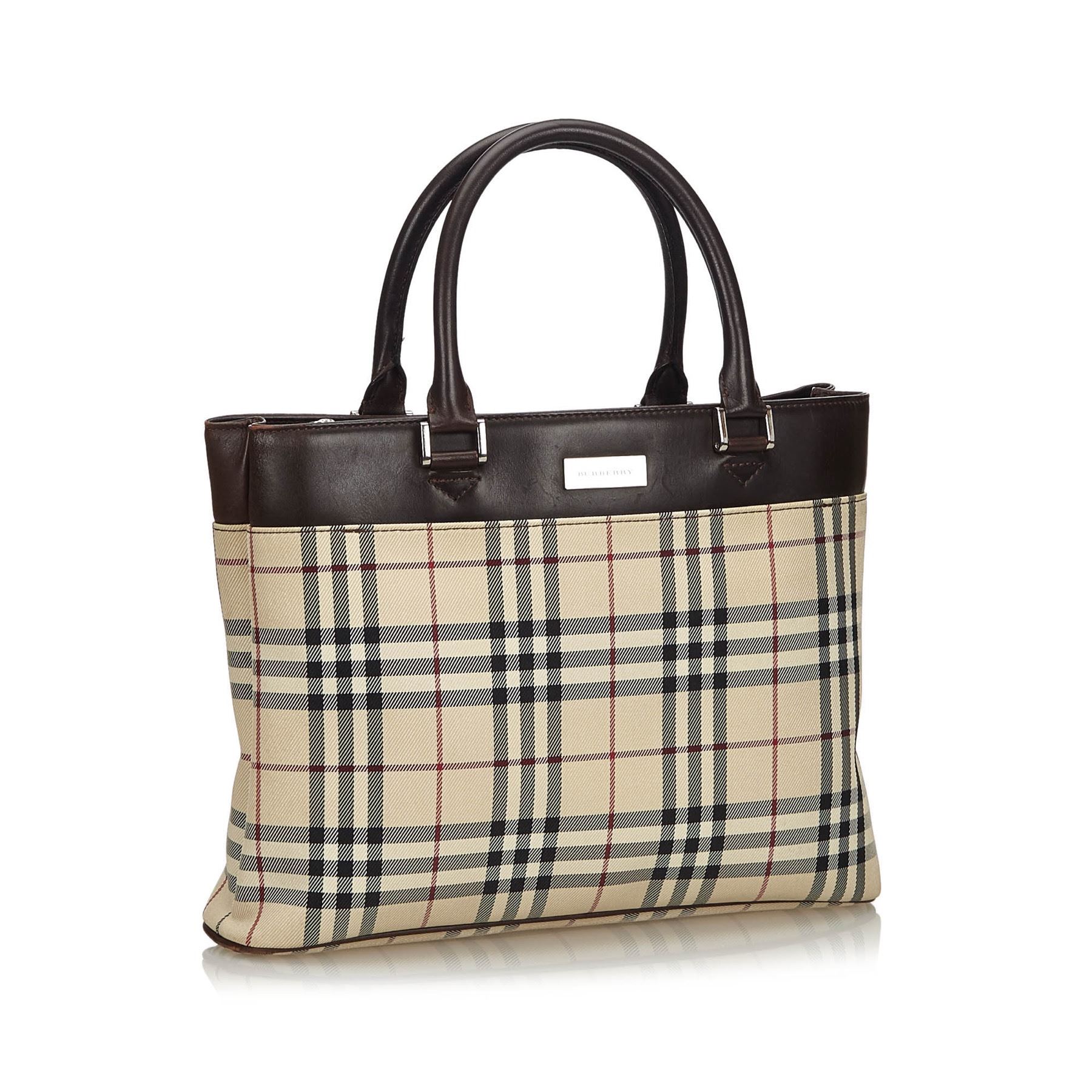 This handbag features a canvas body with leather trim, rolled leather handles, an open top, and interior zip and slip pockets. Fabric x Canvas x Leather x Others Brown x Beige x Multi Exterior back is scratched. Exterior corners is loose stitching. Exterior front is loose stitching, out of shape and scratched. Size: 24 x 33 x 8 Card: NO Made in: United Kingdom