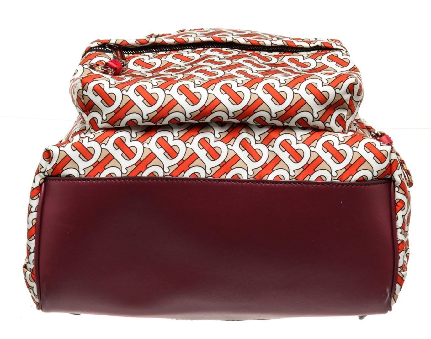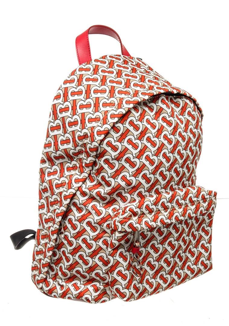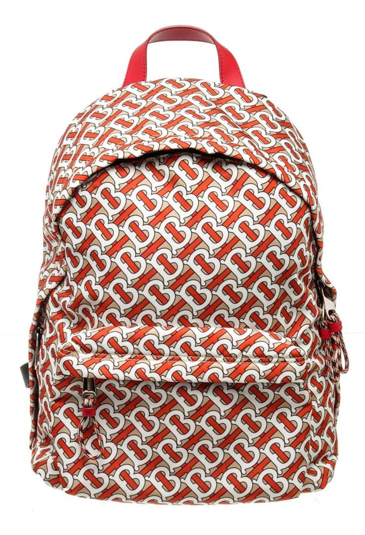 Burberry Multicolor Leather Front Pocket Backpack Bag with leather, gold-tone hardware, exterior zip pockets, interior slip pockets, shoulder strap and zipper closure.