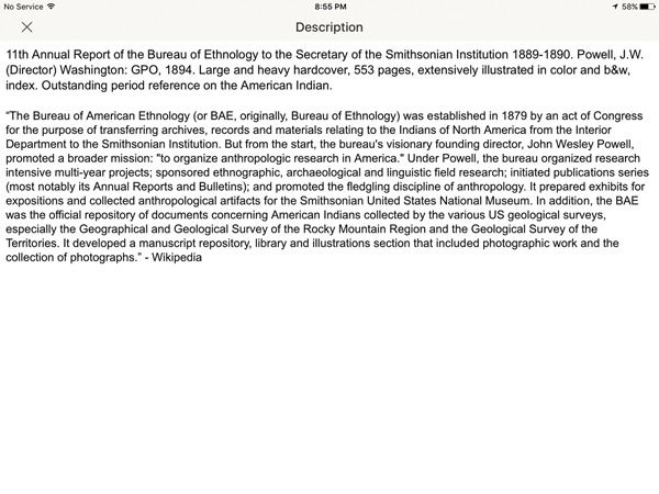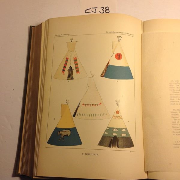 Rare, early 11th annual report (1889-1890) produced by the B.A.E featuring "kachina mask," "Siouan tents," and other native subjects. Good condition.Ca. 189911-1/2" x 8"