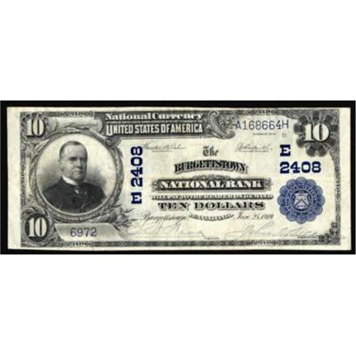 Burgettstown, PA. $10 1902 Plain Back. Fr. 632. The Burgettstown NB. Charter #(E)2408. Very Fine+