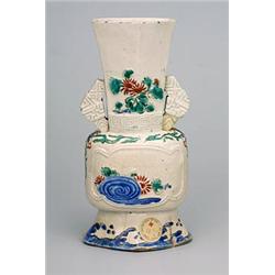 Burghley Revisited: The Discovery of Two Pieces of Early Arita Porcelain The recent discovery of two pieces of early enamelled Japanese porcelain in a private collection in Hampshire has added another chapter to the story of the famous collection of oriental ceramics at Burghley House. Much of the collection was amassed during the tenure of John, the fifth Earl of Exeter and his wife Anne, in the latter third of the 17th century. Great patrons and connoisseurs of the fine and decorative arts, the Earl and Countess travelled extensively throughout Europe acquiring paintings, sculpture, tapestries furniture, jewellery and object d'art on their four (recorded) tours between 1679 and 1699. There is no mention of them buying porcelain abroad in any of the surviving documentation relating to this period. Among the archives are two highly important inventories: the room-by-room listing of the contents of all the rooms at Burghley drawn up by Culpepper Tanner, personal secretary to the fifth Earl, in 1688; and the Devonshire Schedule of 1690, a bequest from Elizabeth, Countess of Devonshire in favour of her daughter Anne, wife of the fifth Earl. The latter document includes (with three exceptions) a large quantity of late Ming and Transitional porcelain and is therefore irrelevant to these recent discoveries. The 1688 inventory is the earliest listing of Japanese porcelain in which at least some of it remains in the same place at the present time. It is mainly by reference to the 1688 inventory that the three items in question can be related to the early Japanese porcelains at Burghley House. The contents of a great house such as Burghley are subject to the molestation of time and to the ebb and flow of paintings, furniture and art objects in tune with the fashion of the day and the particular interests of its incumbents. After the 1688 inventory and the death of John, the fifth Earl in 1700 it is clear that more Japanese porcelain was added to the collection. It is also known that some important inventoried pieces were disposed of in the sale at Christies in 1888 and again at Christies in 1959 (Lot 22 - An Important Pair of Japanese Figures of a Stag and Doe, late 17th Century. These may well be the "2 large hindes" in "My Lords Bedd Chamber" or the "2 staggs" in My Lords Dressing Roome in the 1688 Inventory). Both pieces in question are of early Arita enamelled porcelain - a vase modelled after an archaistic bronze beaker (lot 89) and a figure of a woman standing by a rock applied with pine and painted with bamboo (lot 90). They are both relatively primitive and probably date from c. 1660 to 1670. Composed of somewhat greyish paste, the body is dressed in a thinnish off-white glaze. Both are decorated in thickish and irregular saturated enamels characteristic of the earliest phase of Arita exportware between c.1660 and 1680 - a rich, almost blood red; deep cerulean, turquoise and a little black detailing. Each piece has a small paper label bearing the name and a number written in black ink. These, and another item, a boy on a shogi table, still in the collection, were exhibited in the Red Cross Exhibition of Japanese Art and Handicraft in 1915 nos. 50 (although confusingly the labels state 49 and 49a), 51 and 67 with a footnote stating that the first two were formerly in the collection of the Marquess of Exeter at Burghley House. In addition there are paper labels each bearing the name Read and the numbers 8, 7 and 6 respectively. All three were entered for the exhibition by Sir Hercules Read. Charles Hercules Read was, at the time of the Exhibition, Keeper of the Department of British and Medieval Antiquities and Ethnography at the British Museum. Whether Read bought any or all of these pieces at the Christies Auction of the Marquess of Exeter's sale in 1888 is unknown. The rather loose catalogue descriptions make it possible only to identify the figure by the rock with any degree of certainty. This first figure may be paired with the example in the British Museum, which is illustrated by Soame Jenyns in Japanese Porcelain, plate53A. In the 1688 inventory Tanner has listed under the heading "My Ladyes Bed Chamber - China over ye Chimney and in ye Roome - 2 Rockes & figures under them" (Jenyns, op.cit. misquoted the Burghley Inventory when he employed "trees" rather than the correct "them"). Or, allowing some latitude in translating late 17th century usage, is it the "2 Juggs like Rocks in The Tea Roome" ? The British Museum version, together with another Kakiemon enamelled figure of a bijin (Jenyns,op.cit. 55B) also in the Museum, have labels indicating their former existence at Burghley House. A small blue bordered paper label stuck to the base is inscribed 'Read 7.', another label printed in a sans serif typeface with 'Burghley House. This latter piece is further inscribed in faded ink with a group of characters in a hand very close in style to that of Culpepper Tanner with a script 7 L, m, 7 and what appears to be a kind of ampersand. In the Christies Auction on 8th June 1888 (the second day) under 'Old Japan Porcelain' lot 198 reads: "A pair of curious matchpots formed as trunks of trees with female figures flowers and foliage in relief and in colours, 7 and 1/4in." Apart from the paper label citing its Burghley provenance (and the label 'Read 8') the bronze shaped vase has proved to be more elusive. As it was not listed in the 1688 Inventory it may have been overlooked or may have been acquired not long afterwards. Although the bronze shaped vase and the figure of the boy on the shogi table have not been found in the 1688 inventory, the attached labels and the very similarity to extant examples at Burghley House most strongly suggest that all three pieces were part of this great collection. It is very likely that all three pieces were purchased by Sir Hercules Read through a dealer, some other agent, or by private treaty at the time of the partial dispersal of the Burghley collection in 