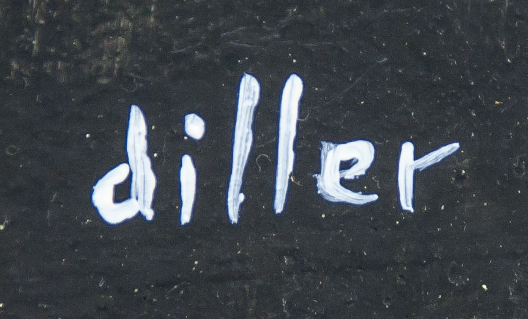 Oil on canvas, framed, featuring an abstract composition. Signed Diller on the lower right corner. Attributed to Burgoyne Diller (1906-1965, American). 43 x 39 cm (16.9 x 15.4 inches). Frame size: 48 x 44.5 cm (18.9 x 17.5 inches) PROVENANCE: Southern Ontario estate