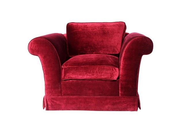 Burgundy Club Chair - Soft and comfortable, the Burgundy Collection includes down-filled cushions and can be slipcovered for a cozy, Shabby Chic look. Dimensions: 4'2'' W x 3'4'' D x 2'6'' H. Rental price associated with this item: $225.00.