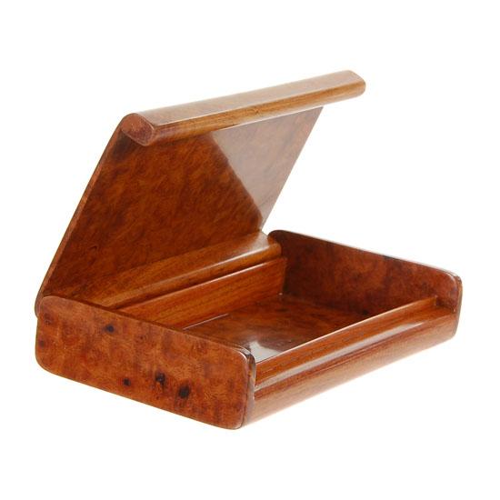 Excellent Craftsmanship; rare burl wood; removable divider; key lock; 7" X 4" X 1.25"