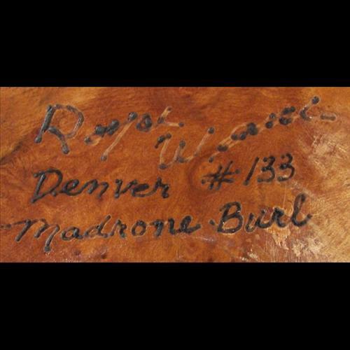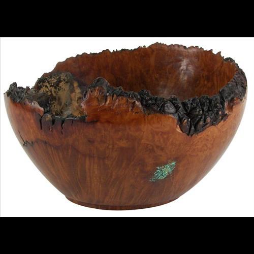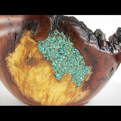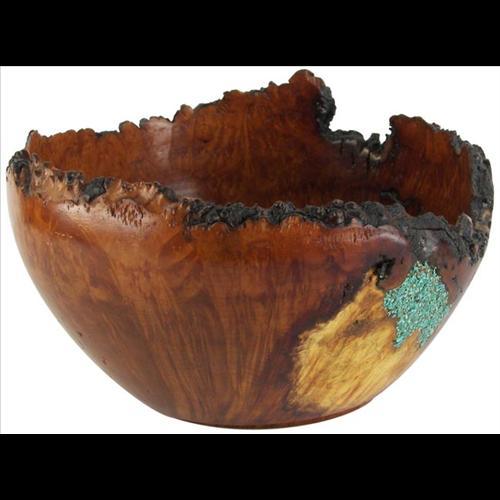 Burl Wood Bowl, with Turquoise Chip Inlay, signed Roger W..? Of Denver, 6 1/2" tall x 11 1/2" diameter