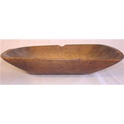 Burl walnut dough bowl. Measures 18" x 11". Has a crack on one side measures 2 1/2" long.