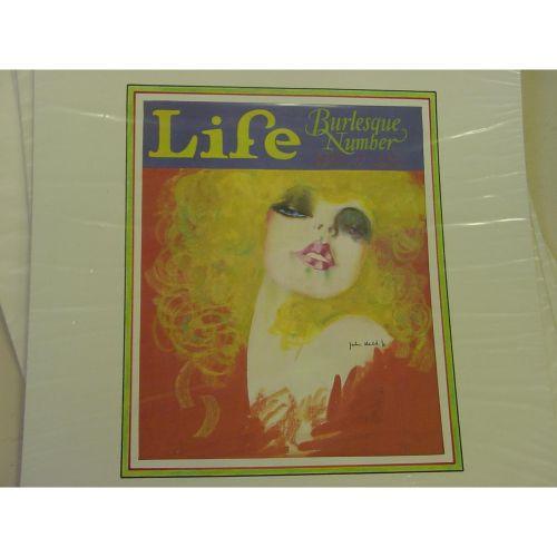 Print from Life, Apr. 19, 1928, with Art Deco at the absolute zenith, the Burlesque Number depicts a show girl with full stage makeup looking confidently at the viewer with no idea as to the coming Depression. Rich color. 8" wide by 10 1/2" tall.
