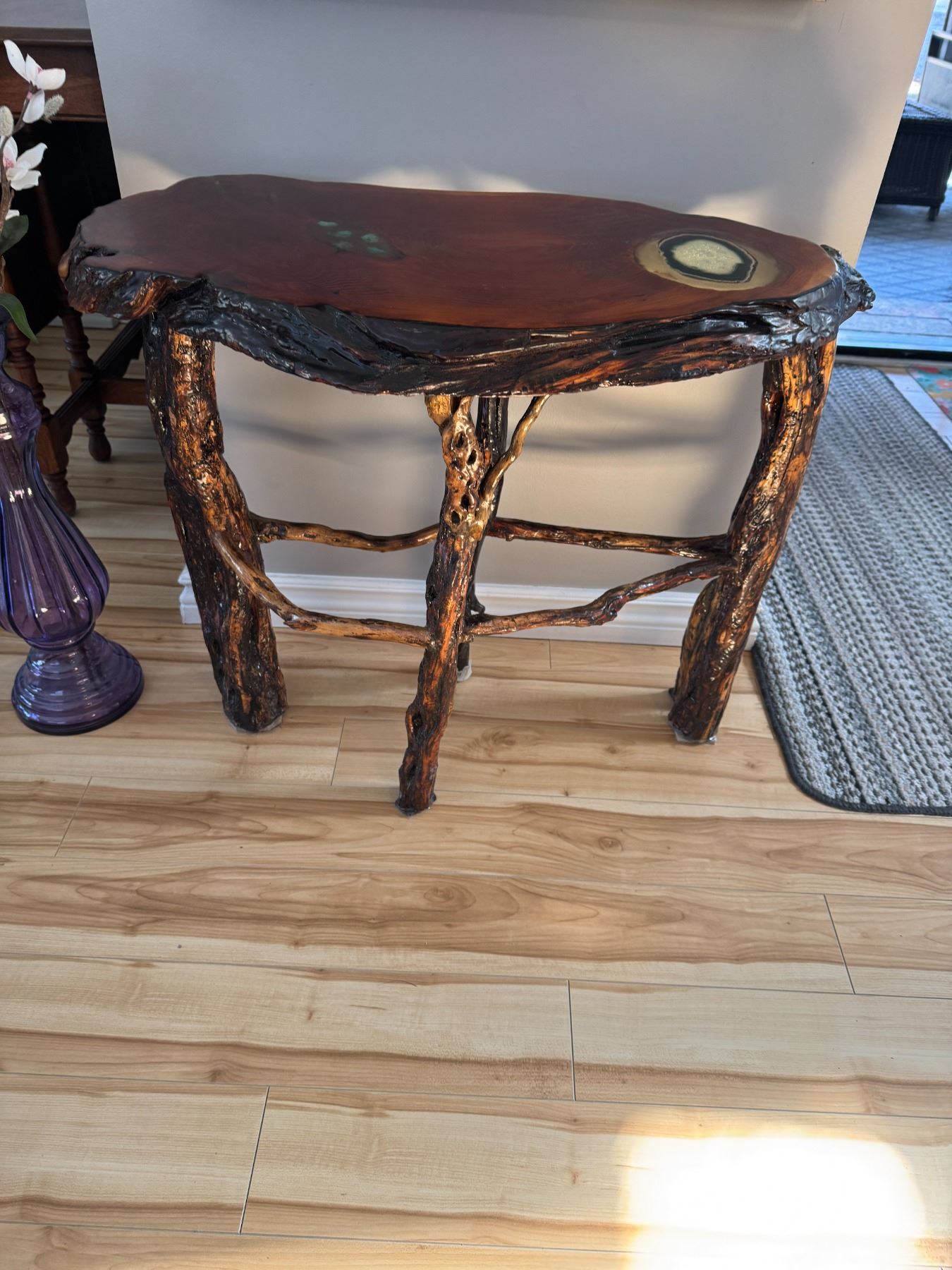 Burlwood table 30 1/2" x 15" x 25 1/2" tall